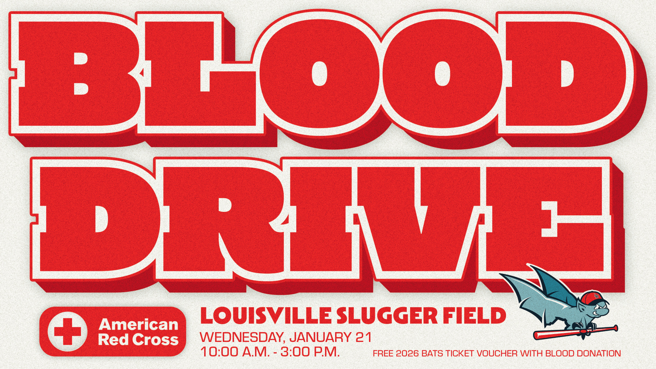 The Louisville Bats and the American Red Cross will once again team up to support a critical community need by hosting a blood drive at Louisville Slugger Field on Wednesday, January 21 from 10 a.m. to 3 p.m.
