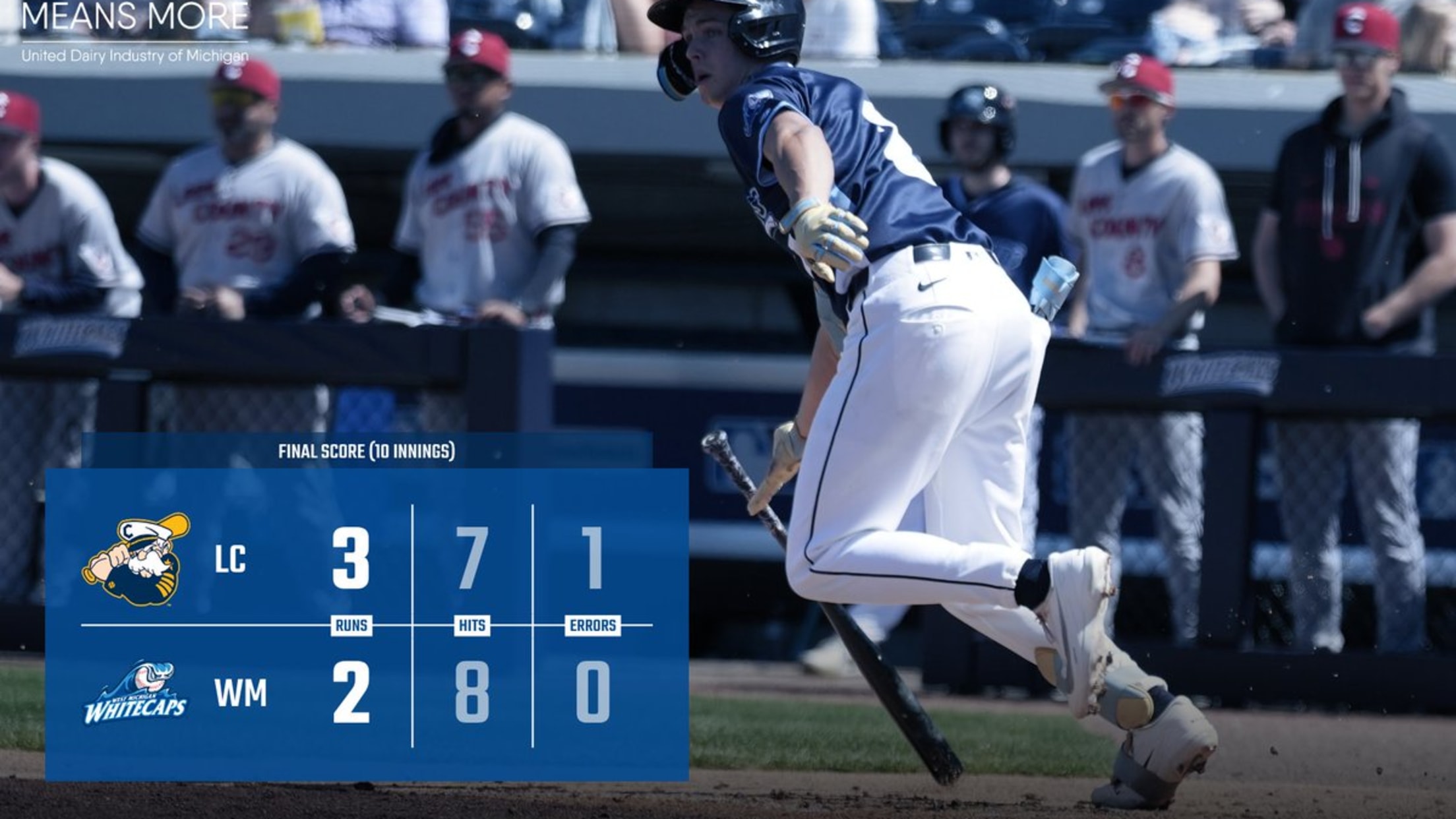Both the Whitecaps and Captains matched wits on the mound through the first six innings. For West Michigan, starting pitcher Gabriel Reyes tossed 4.1 scoreless innings before Ryan Harvey followed with 1.2 shutout innings, leaving nine Captains runners stranded. Meanwhile, Lake County starting pitcher Franklin Gómez was just as impressive, going five scoreless innings before reliever Michael Kennedy tossed a scoreless sixth, stranding eight baserunners and maintaining the scoreless tie. Lake County broke through in the seventh as No. 8 Guardians prospect Jace LaViolette sent a solo home run over the right-field wall to take a 1-0 lead. Then, with one out in the ninth inning, Kennedy threw an errant pitch that allowed ‘Caps baserunner Jackson Strong to advance to third base before fellow outfielder Junior Tilien plated him on an RBI groundout, sending the game into the tenth tied at one.