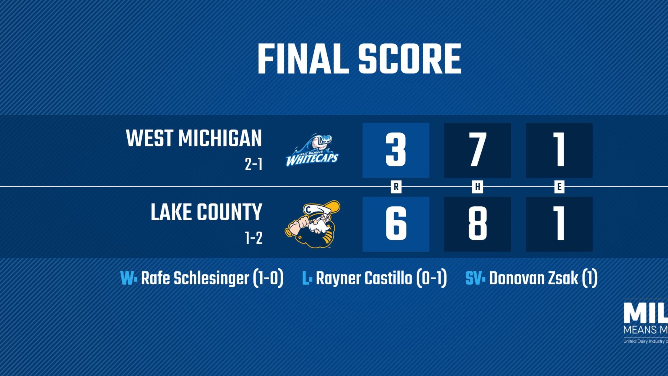 EASTLAKE, OH – The West Michigan Whitecaps struggled to solve tough opposing pitching as part of a 6-3 loss to the Lake County Captains on Saturday afternoon at Classic Park.