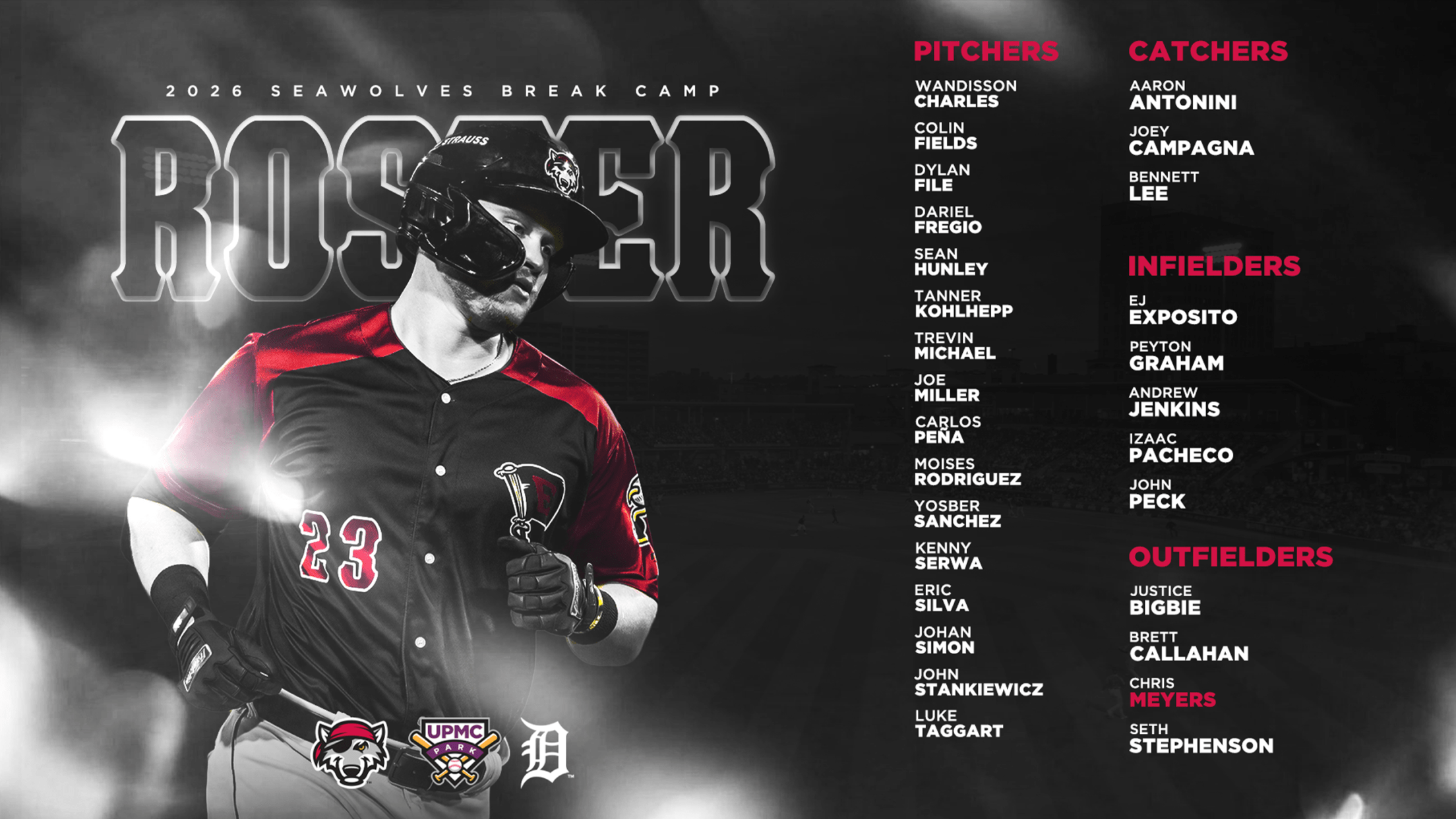 The Erie SeaWolves, in collaboration with their parent club the Detroit Tigers, have released the club’s 2026 Break Camp roster, highlighted by two top 30 prospects and 12 players with previous experience in the Flagship City. John Peck (Detroit’s No. 15 prospect per MLB Pipeline) and Izaac Pacheco (No. 22)