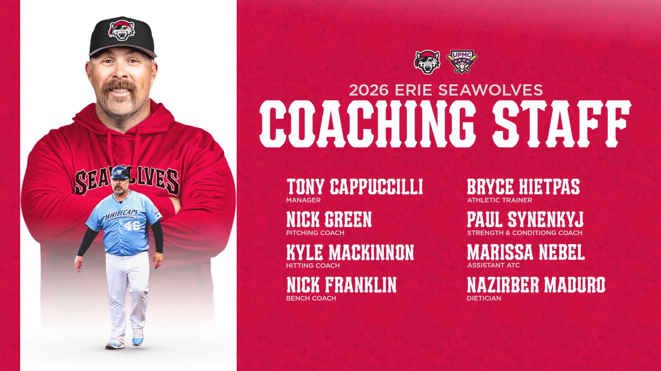 (Erie, PA) – The Erie SeaWolves, in conjunction with their parent club the Detroit Tigers, today announce the team’s 2026 field staff. Tony Cappuccilli has been named manager of the SeaWolves for the 2026 season. Cappuccilli spent the past two seasons as the manager for the High-A West Michigan Whitecaps.