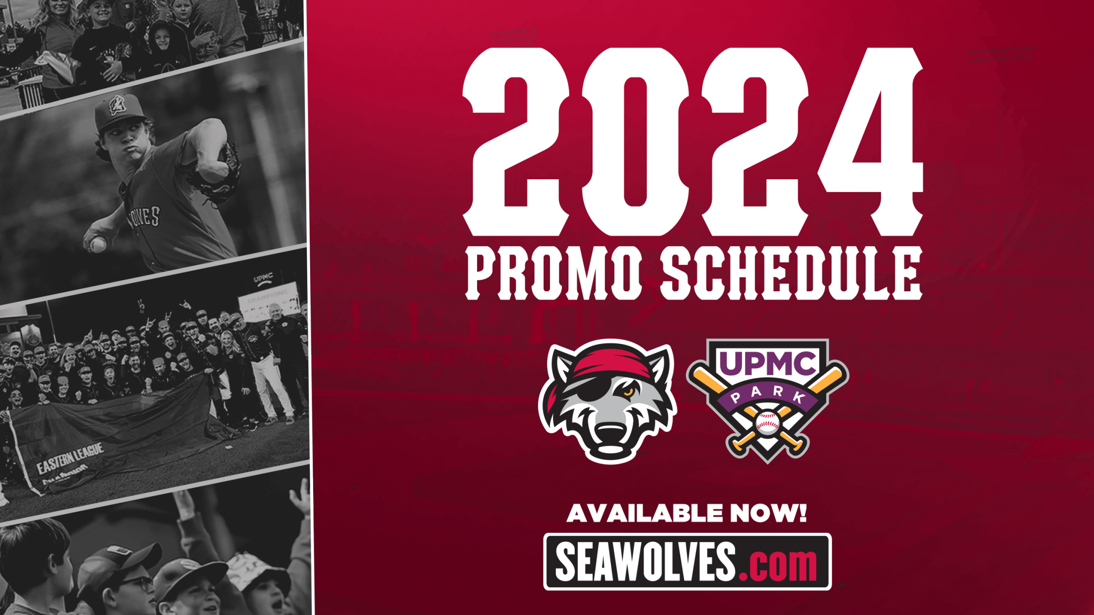 CHECK OUT THE 2024 PROMO CALENDAR HERE GET SINGLE GAME TICKETS HERE The SeaWolves have released the first wave of the team’s 2024 promotional calendar. 2024 Opening Night is Tuesday, April 9 against the Binghamton Rumble Ponies (New York Mets) at 6:05 p.m. On Opening Night, the SeaWolves will raise