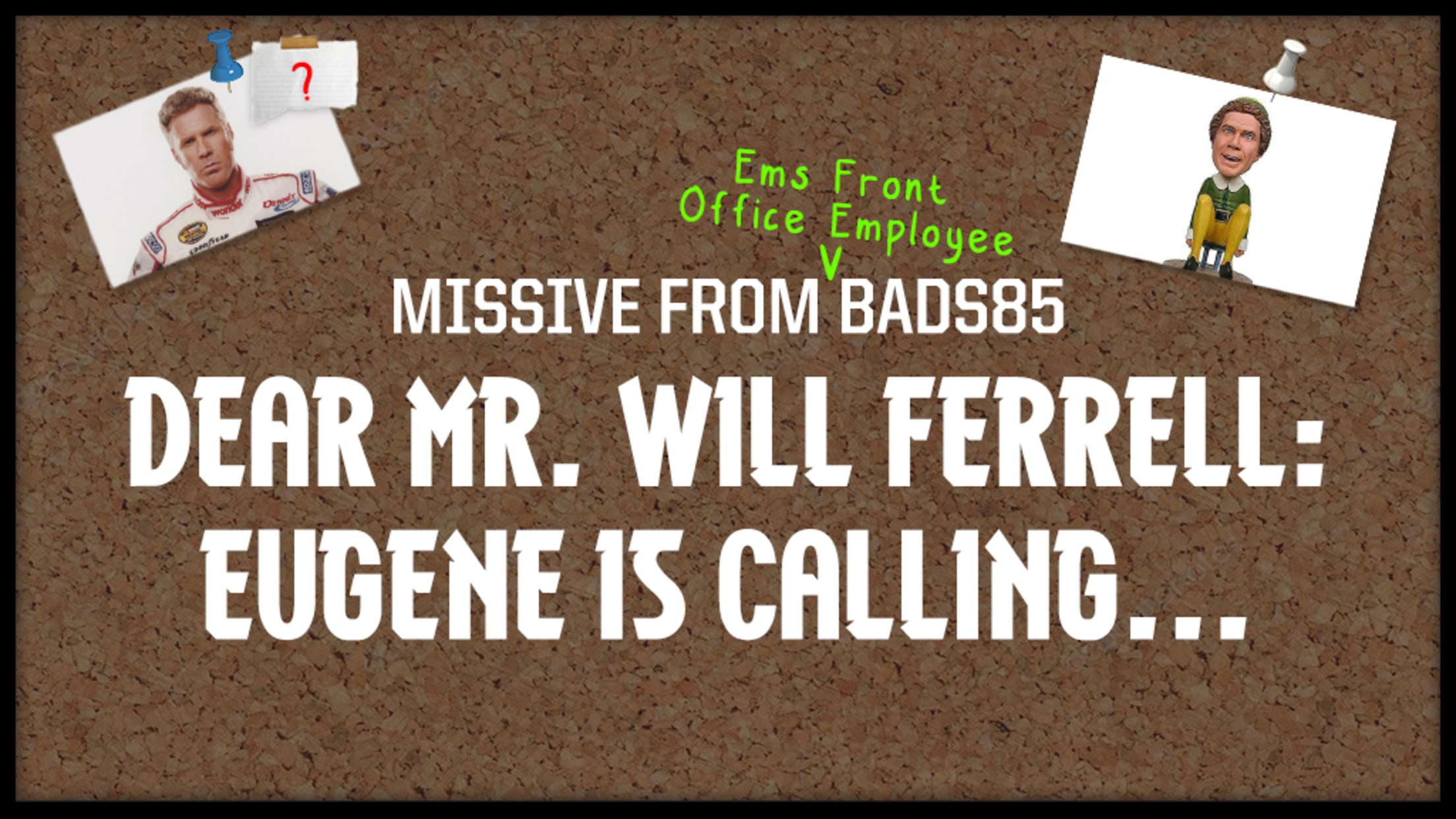 Missive from Bads85: Dear Mr. Will Ferrell: Eugene is Calling...