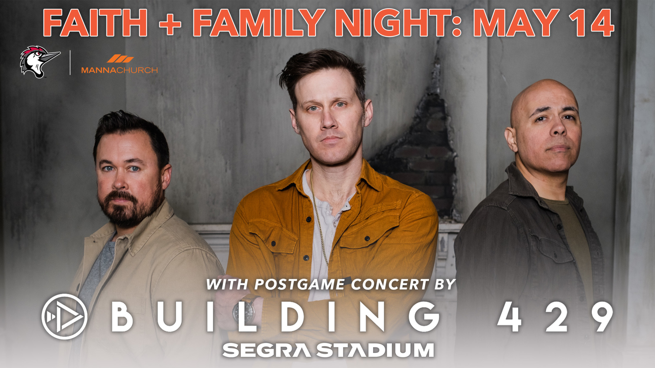 The Fayetteville Woodpeckers are excited to announce that Building 429, a GRAMMY® nominated Christian Rock band from Fayetteville, North Carolina, will perform following the Faith & Family Night game, presented by Manna Church on Saturday, May 14th. The Woodpeckers game that evening will begin at 5 p.m. and the concert will start following the conclusion of the game.