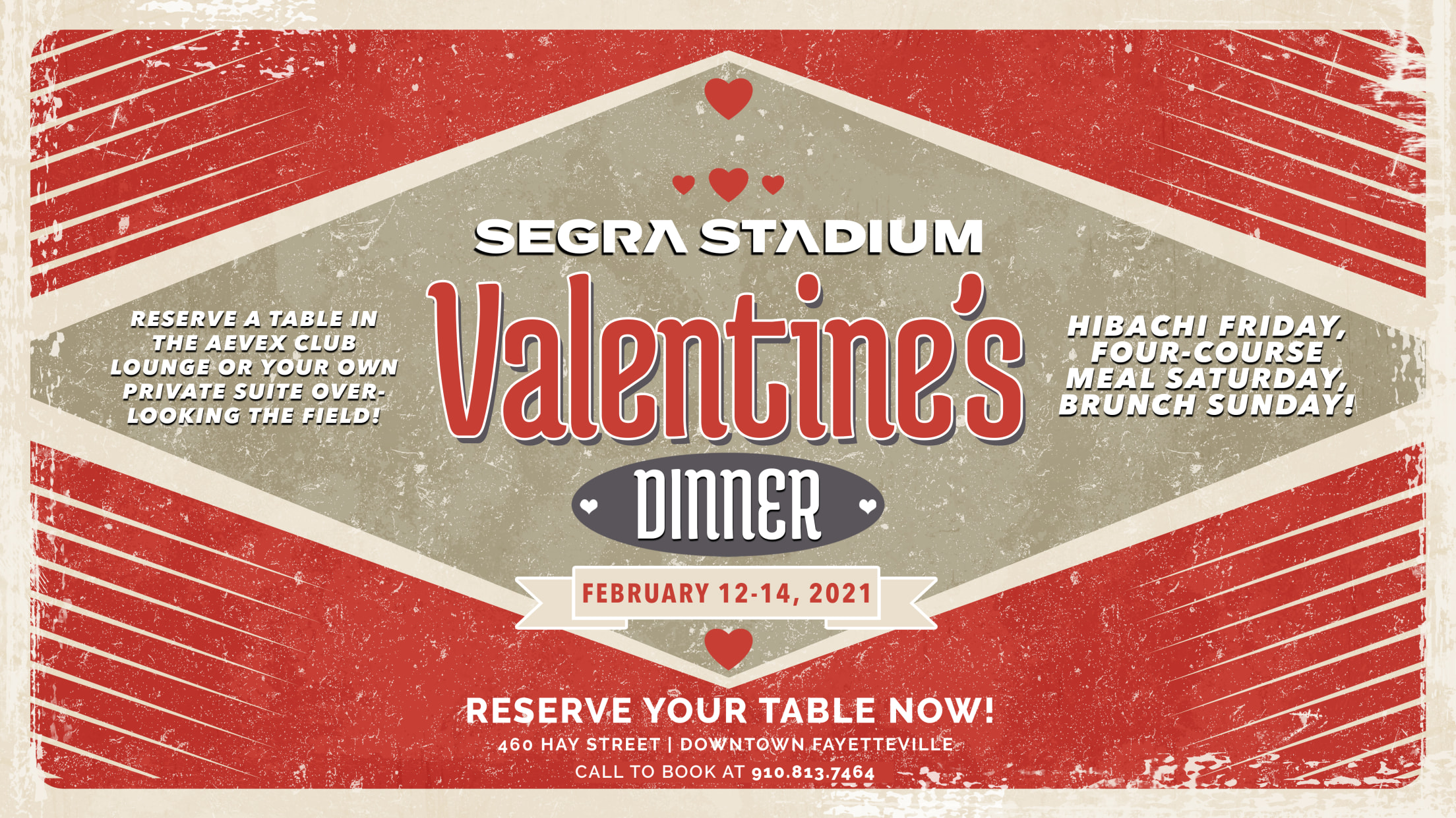 FAYETTEVILLE, N.C. — The Fayetteville Woodpeckers are offering a first-class, safe dining experience for couples to celebrate Valentine’s Day weekend. Couples can reserve a table in the AEVEX Veterans Club Lounge or book their own private suite for dinner on Friday, February 12th or February 13th. Sunday brunch will be