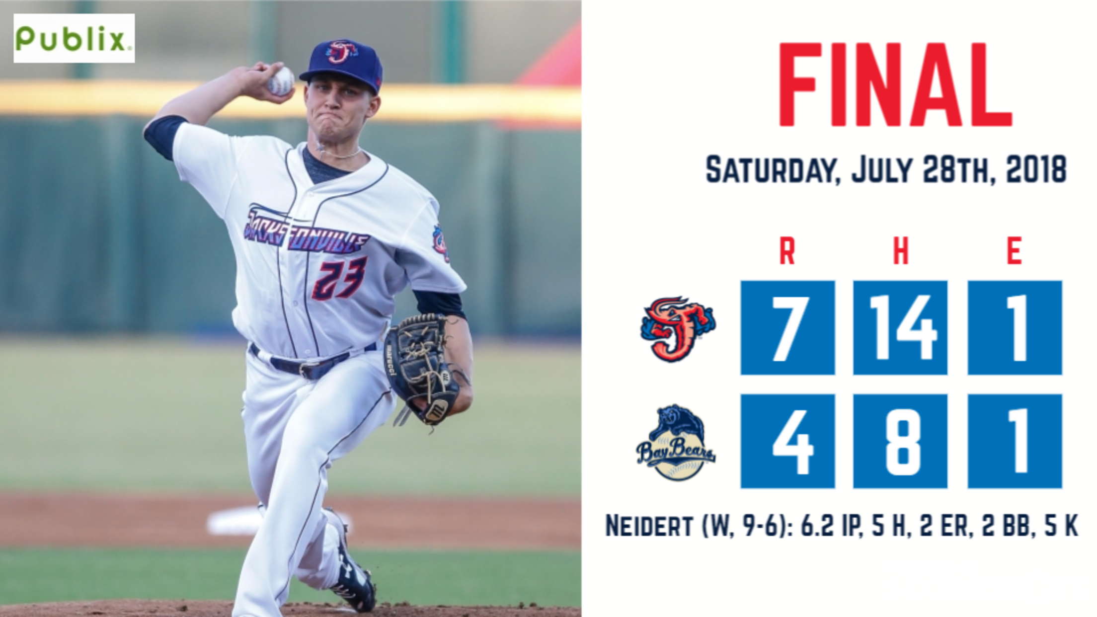 After Neidert's first five innings were scoreless, the BayBears struck for a pair of runs in the bottom of the sixth. First Jose Rojas delivered an RBI double before he was brought home on a sacrifice fly by Roberto Baldoquin to cut Jacksonville's lead to 5-2.