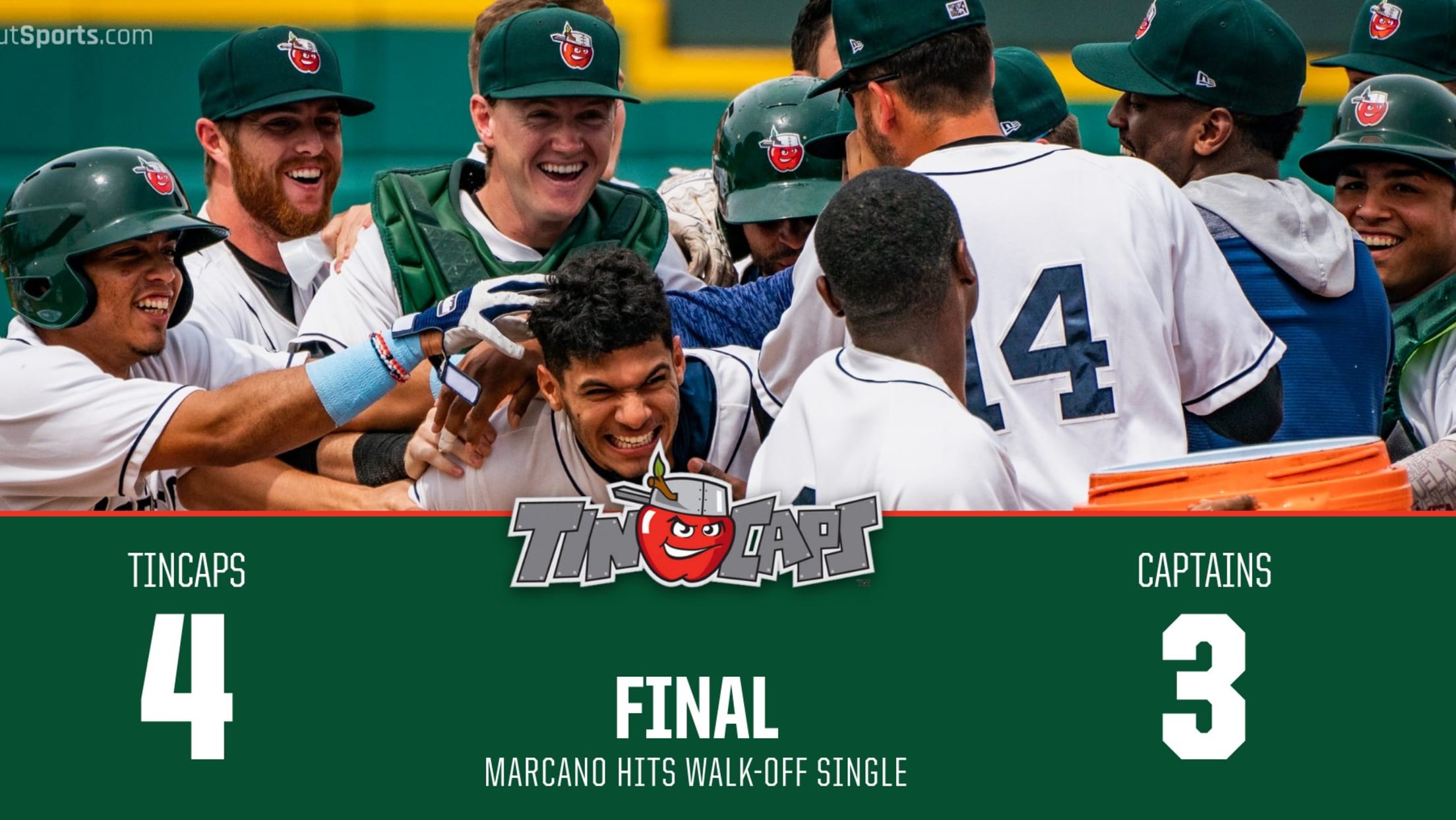FORT WAYNE, Ind. - The TinCaps secured a victory in the final game of the first half of the regular season in style, walking off winners on Father's Day in the bottom of the ninth inning via a Tucupita Marcano RBI single to beat the Lake County Captains (Cleveland Indians