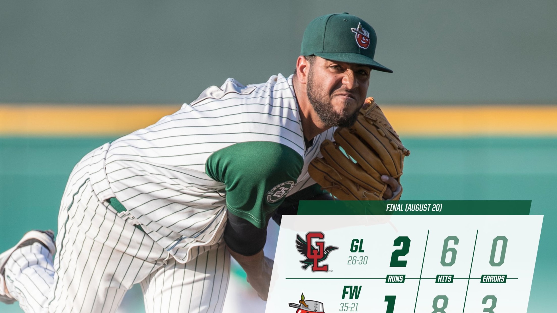 Great Lakes starting pitcher Chris Mathewson (W) had a strong outing too. Mathewson was perfect through his first four innings. In all, Mathewson allowed just one run in eight innings on the mound while striking out eight batters.