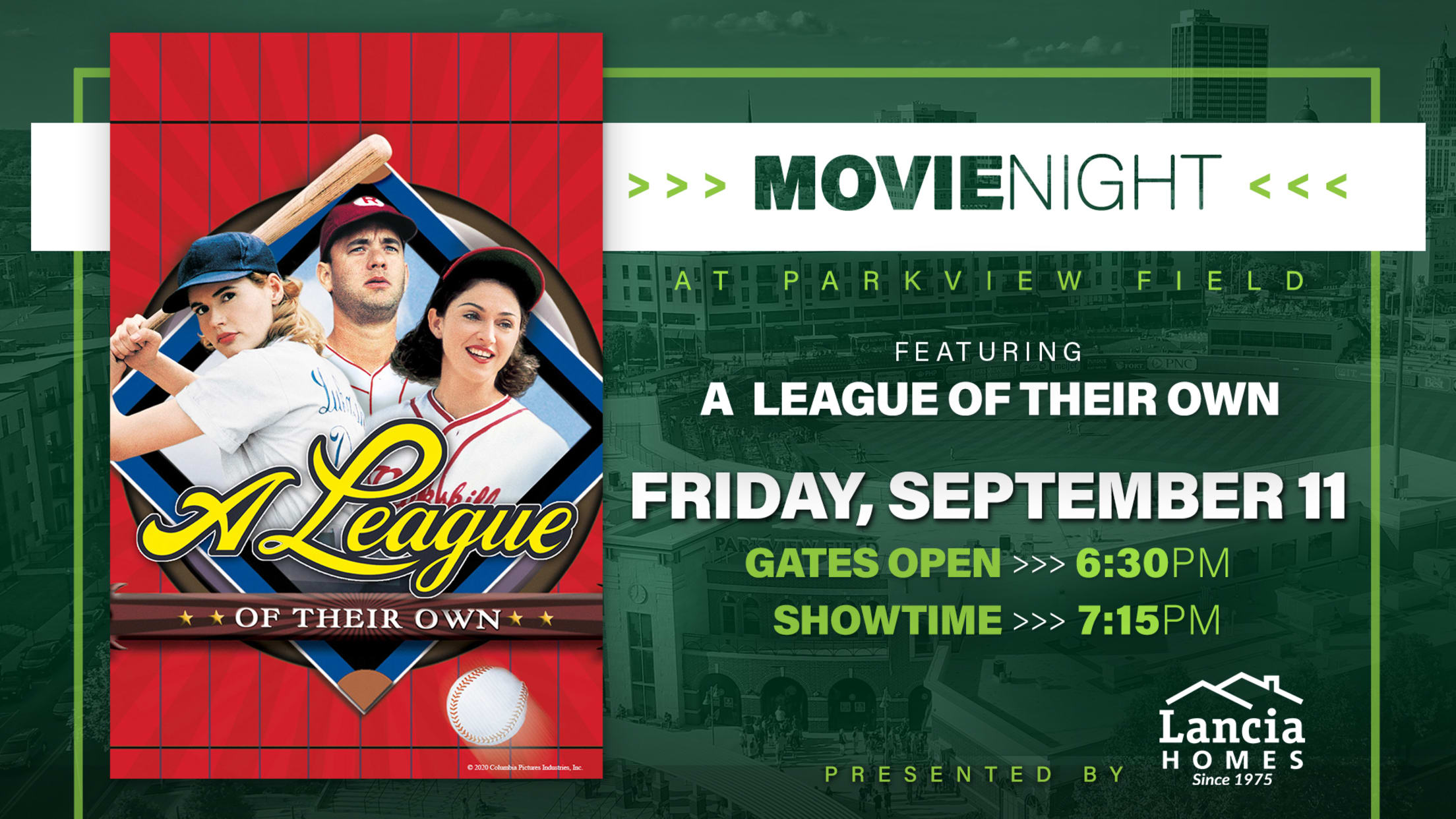 FORT WAYNE, Ind. — There’s no crying in baseball, but there is a baseball movie night coming up at Parkview Field. While many fans have felt like shedding a tear in a year with no Minor League Baseball season, the Fort Wayne TinCaps are welcoming fans to their ballpark for safe and physically-distanced fun on the night of Friday, Sept. 11 with a screening of A League of Their Own, presented by Lancia Homes. The movie will be shown on Parkview Field’s brand new HD LED video board.