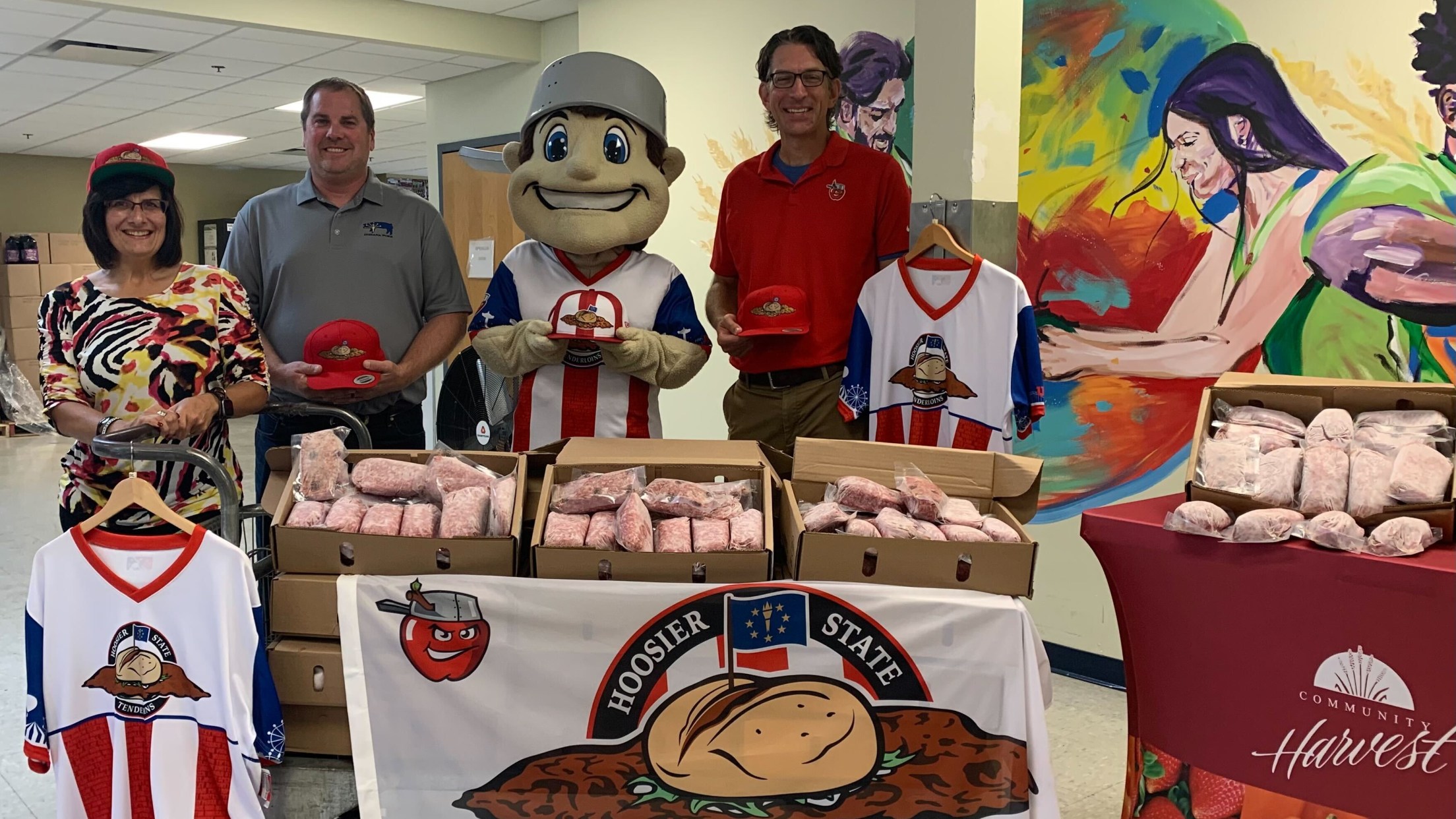 FORT WAYNE, Ind. – The Fort Wayne TinCaps and Indiana Pork are donating more than 2,000 ground pork meals to the Community Harvest Food Bank of Northeast Indiana. This comes after the team sold 2,004 tenderloin sandwiches at Parkview Field from Aug. 3-6 when the TinCaps hosted the “Hoosier State
