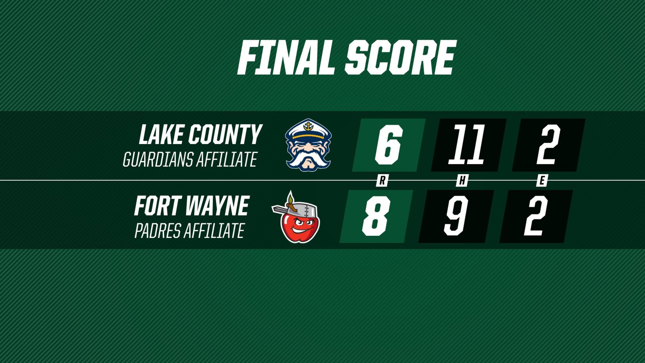 FORT WAYNE, Ind. The TinCaps completed a five-run comeback Thursday night, storming back to take down the Lake County Captains (Cleveland Guardians affiliate), 8-6, at Parkview Field to earn their first victory of the season before a season-best crowd of 4,407.