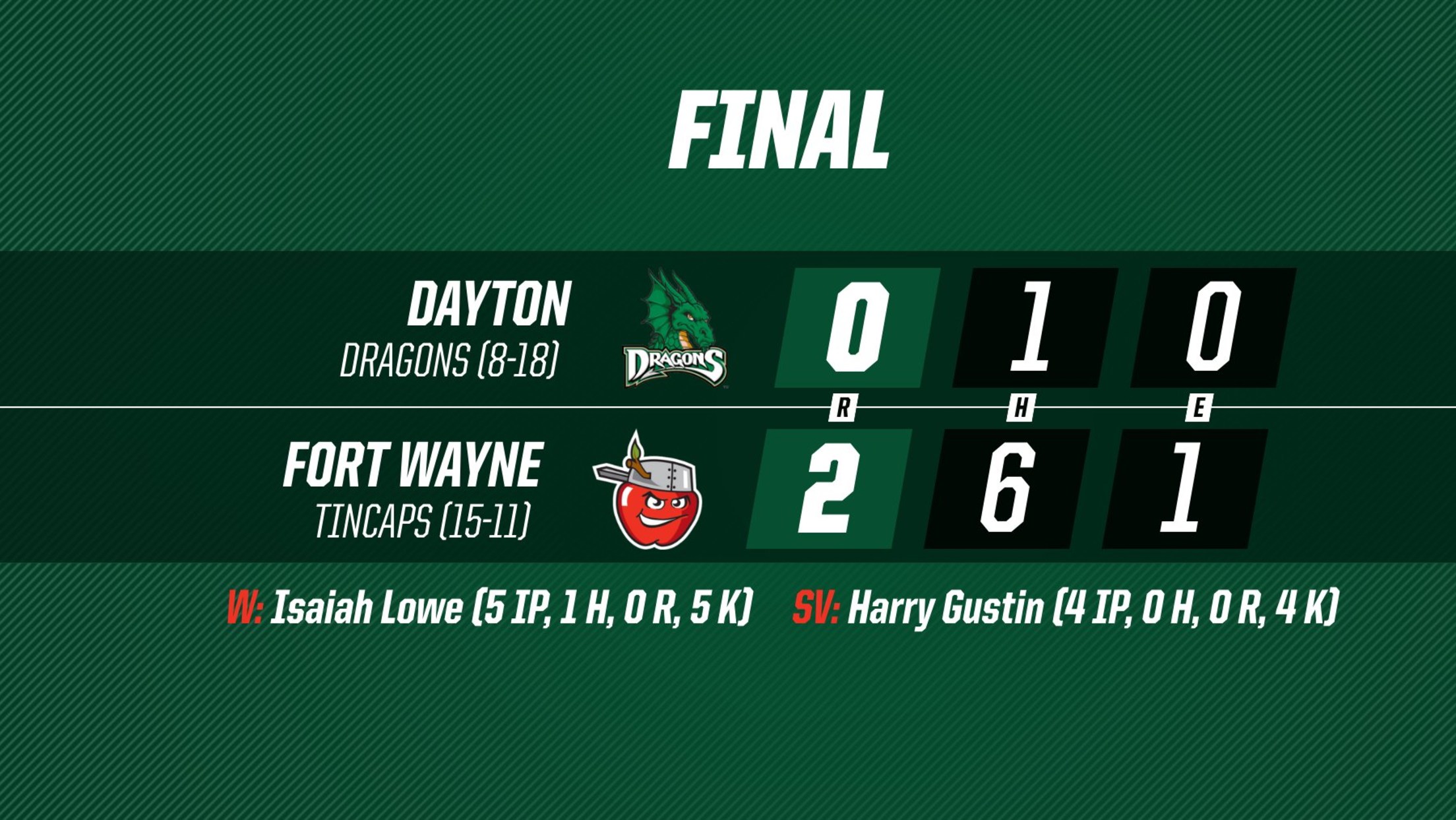 Box Score TinCaps Win 6th in a Row FORT WAYNE, Ind. — The TinCaps have won six consecutive games following their second shutout win this season, defeating Dayton (Reds affiliate), 2-0. The pitching dominated for a second straight night. Fort Wayne (15-11) starter Isaiah Lowe (No. 10 Padres prospect) earned