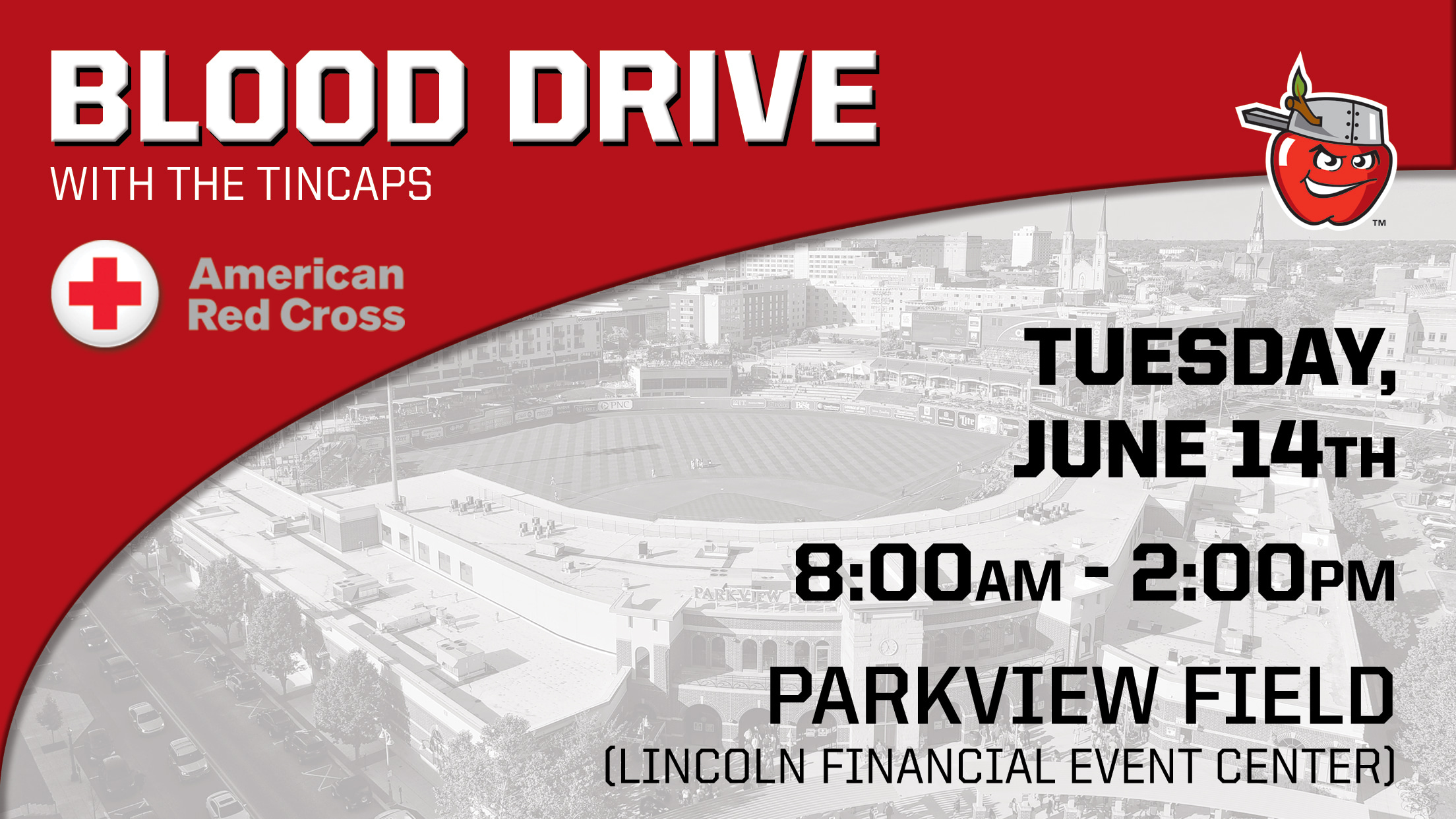 The community is invited to give back and help save lives by donating blood at the Step Up to the Plate Blood Drive on Tuesday, June 14from 8 a.m. to 2 p.m. at Parkview Field.