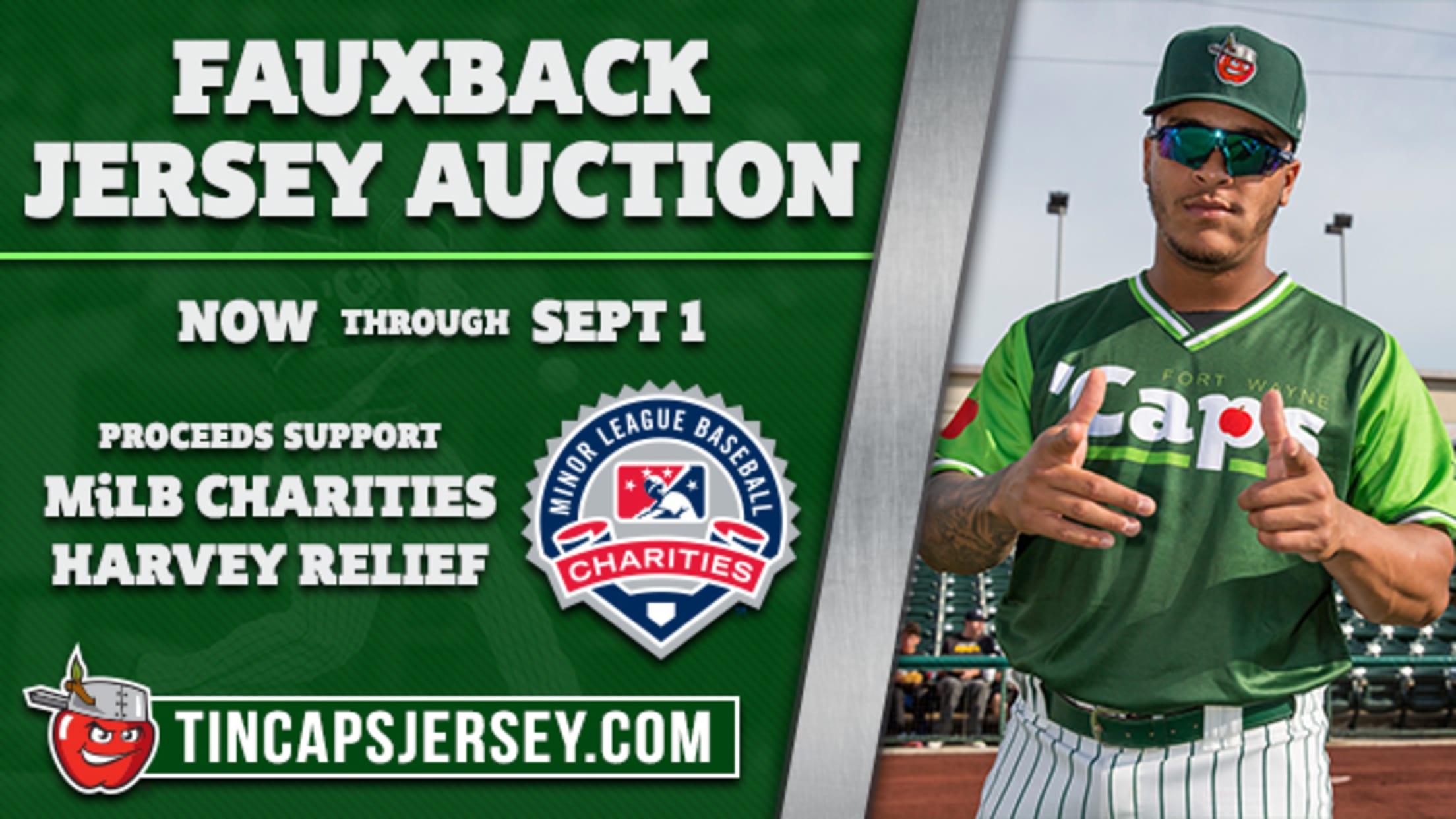 FORT WAYNE, Ind. - In an effort to support those affected by Hurricane Harvey in Texas, the Fort Wayne TinCaps are auctioning off special game-worn jerseys and other memorabilia. All proceeds from the online auction at TinCapsJersey.com (running now through Friday night) will be donated to Minor League Baseball Charities, which is collecting funds on behalf of Minor League Baseball's 160 teams to provide relief to the MiLB communities in need. MiLB Charities will match the TinCaps' donations up to $10,000. Additionally, the Midwest League will match up to $5,000 raised by the TinCaps.