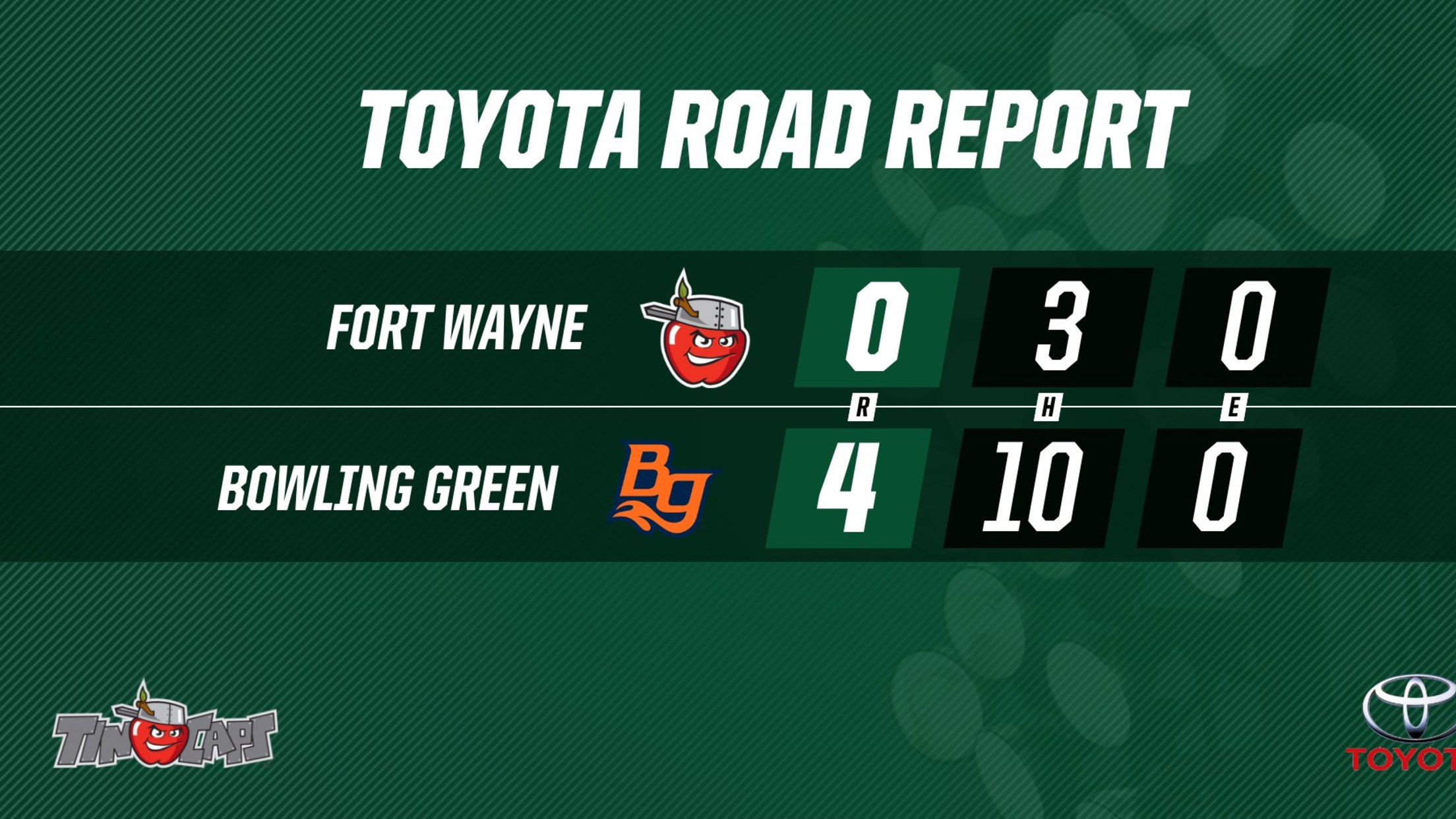BOWLING GREEN, Ky. - The TinCaps lost to the Bowling Green Hot Rods (Tampa Bay Rays), 4-0, on Saturday night at Bowling Green Ballpark. The loss ends Fort Wayne's three-game winning streak.