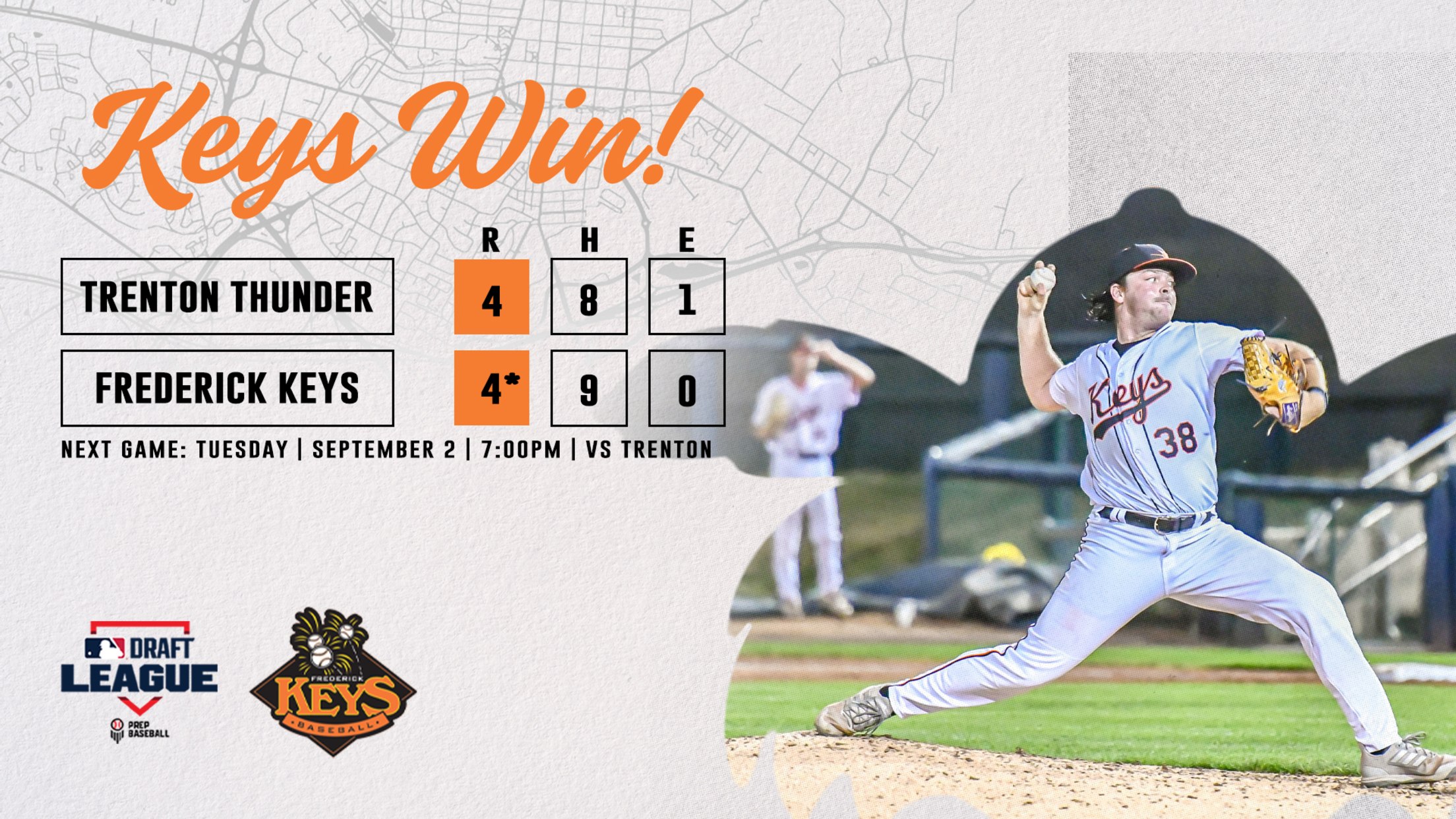 FREDERICK, MD – The Frederick Keys got a series win in their final regular season series of the 2025 season Tuesday night in game two of three against the Trenton Thunder, winning by a score of 9-3 at Nymeo Field at Harry Grove Stadium. The Keys scored seven runs in