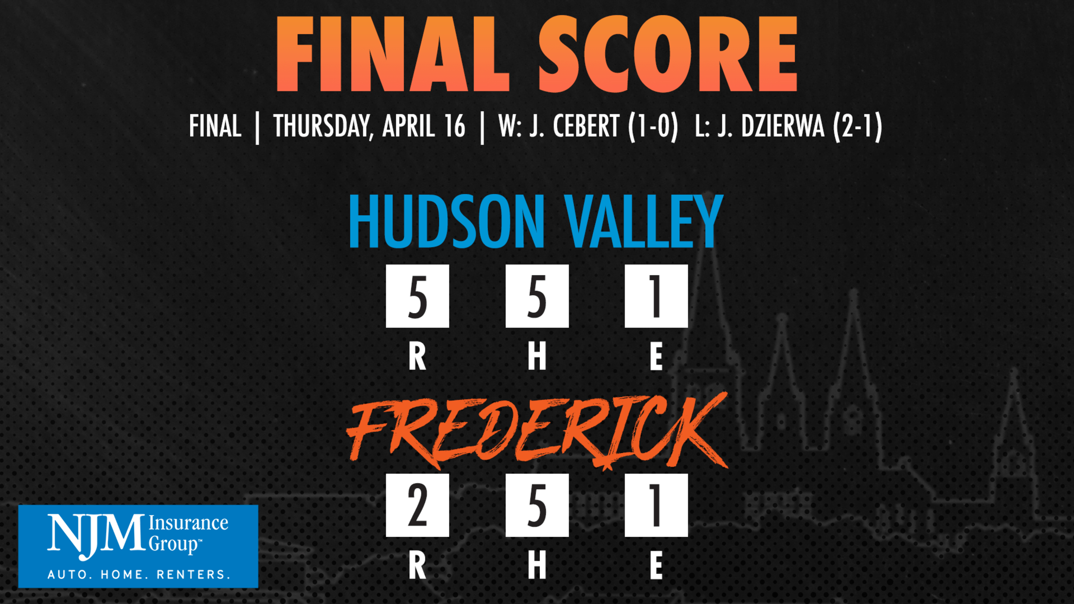 FREDERICK, MD – The Frederick Keys dropped the third game of a six-game series to the Hudson Valley Renegades (Yankees) Thursday night, losing by a score of 5-2 at Nymeo Field at Harry Grove Stadium.