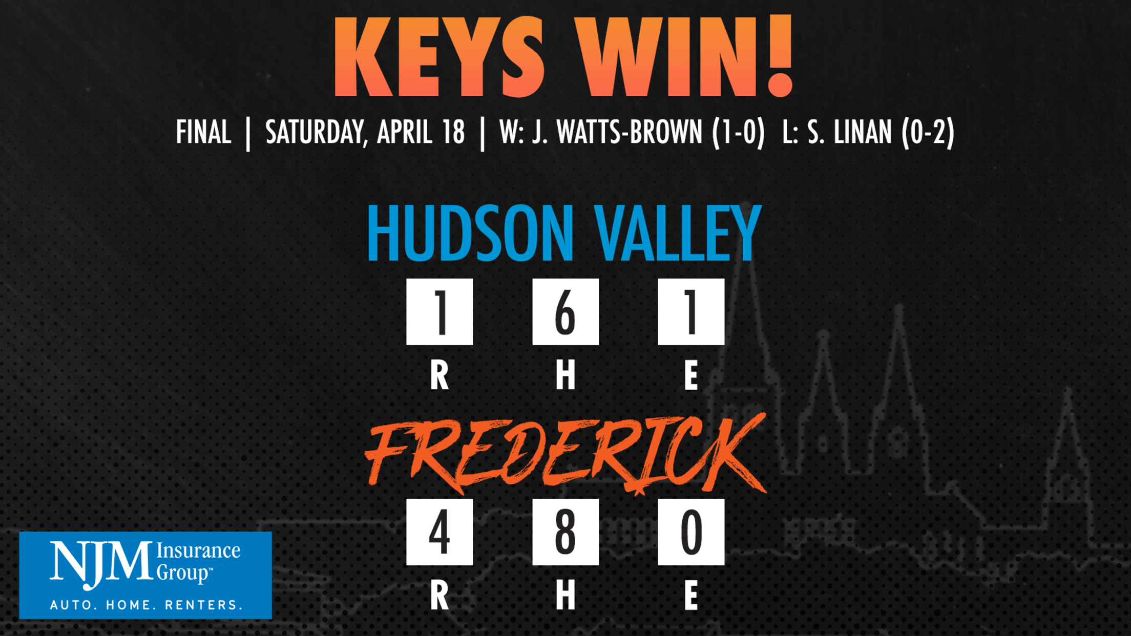 Led by a four-run bottom of the second for the Frederick offense, the Keys held off Hudson Valley down the stretch, as the Keys earned the victory on the same day as their first Major League rehab assignment in Jackson Holliday.