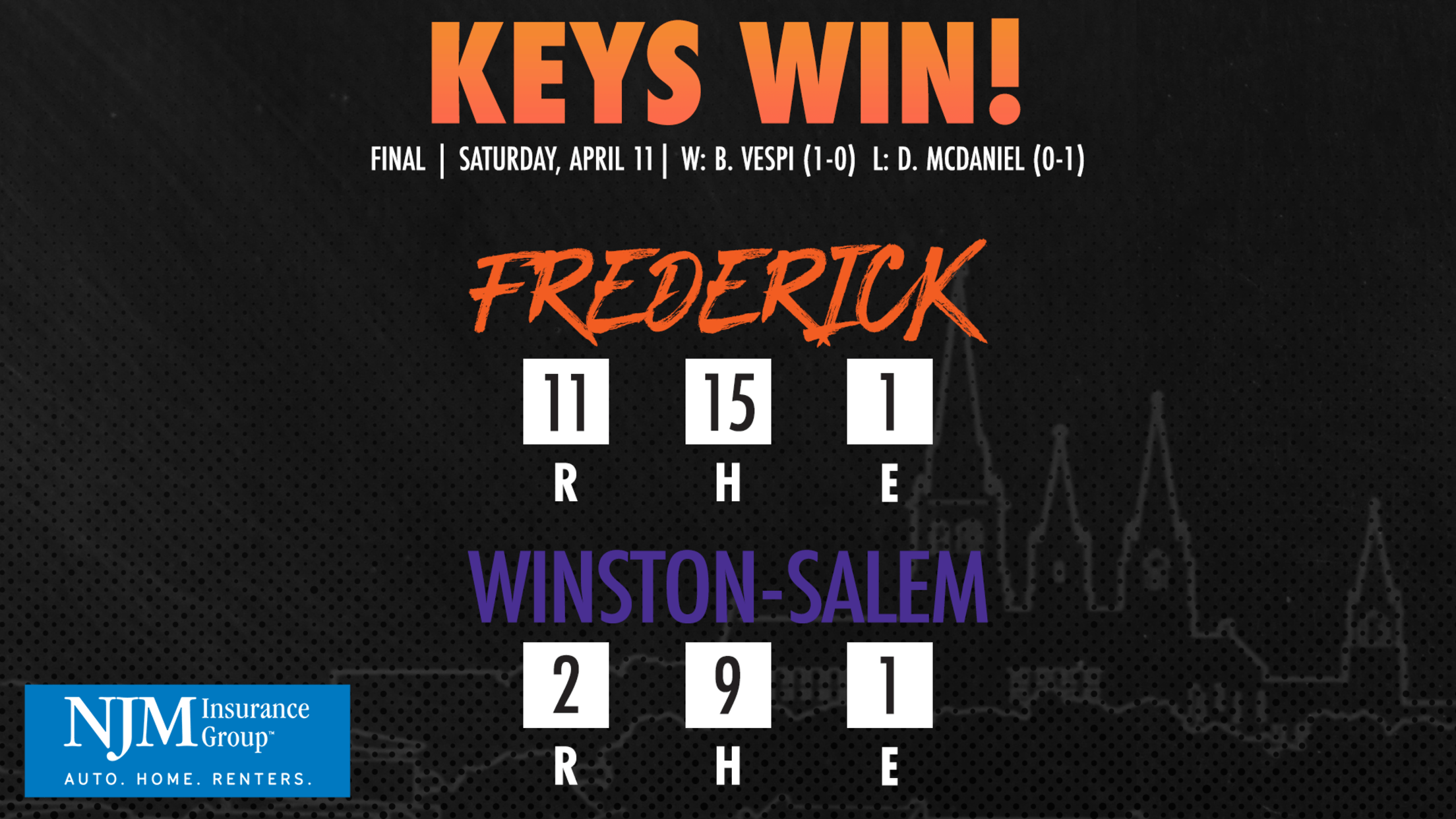 WINSTON SALEM, NC – The Frederick Keys earned a wire-to-wire victory over the Winston-Salem Dash (White Sox) Saturday night, winning by a score of 11-2 at Truist Stadium.