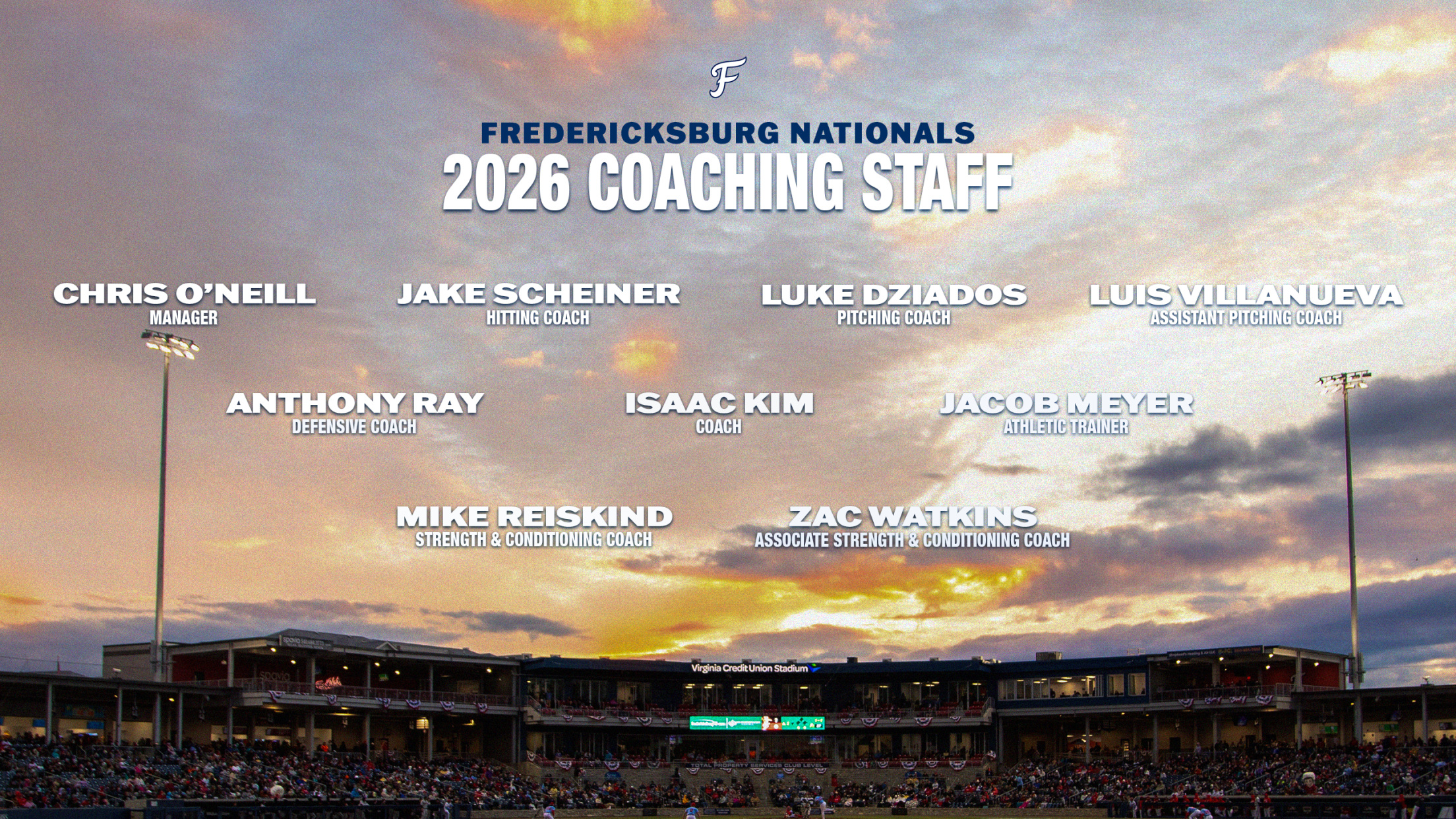 FREDERICKSBURG, Va. - Ahead of the sixth season of Fredericksburg Nationals baseball, today the Washington Nationals announced the 2026 FredNat coaching staff, with Chris O'Neill taking over as the fourth Manager in franchise history. O'Neill will lead a staff comprised of two returners from 2025 and seven newcomers to the