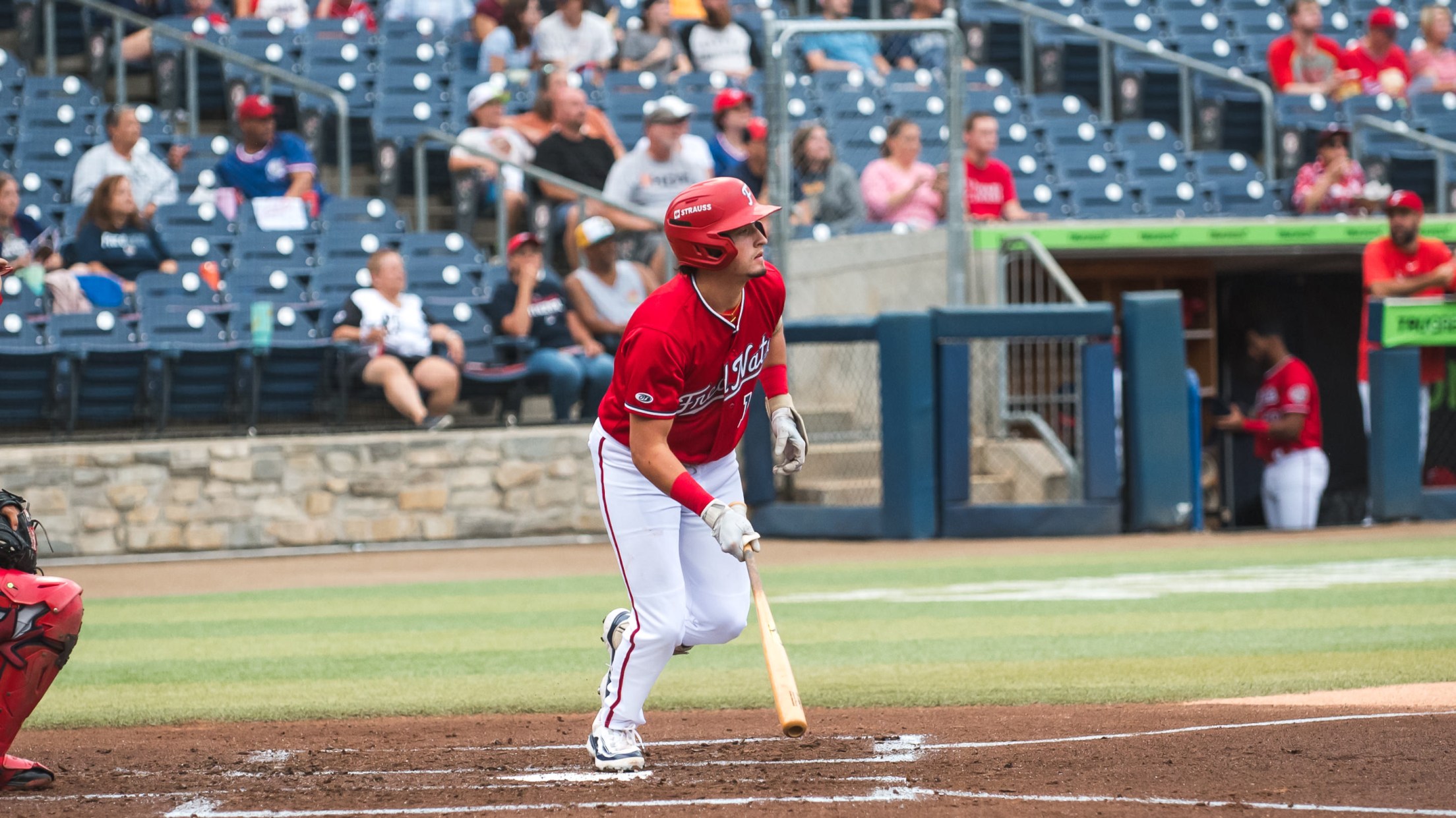 FREDERICKSBURG, VA - After overcoming a 7-1 deficit, the Fredericksburg Nationals (24-19, 54-54) won 10-9 over the Salem Red Sox (21-27, 47-65) on a walk-off single from Nick Hollifield. The win was the FredNats’ second walk-off of the week and Minor-League-Baseball-leading ninth of the season.