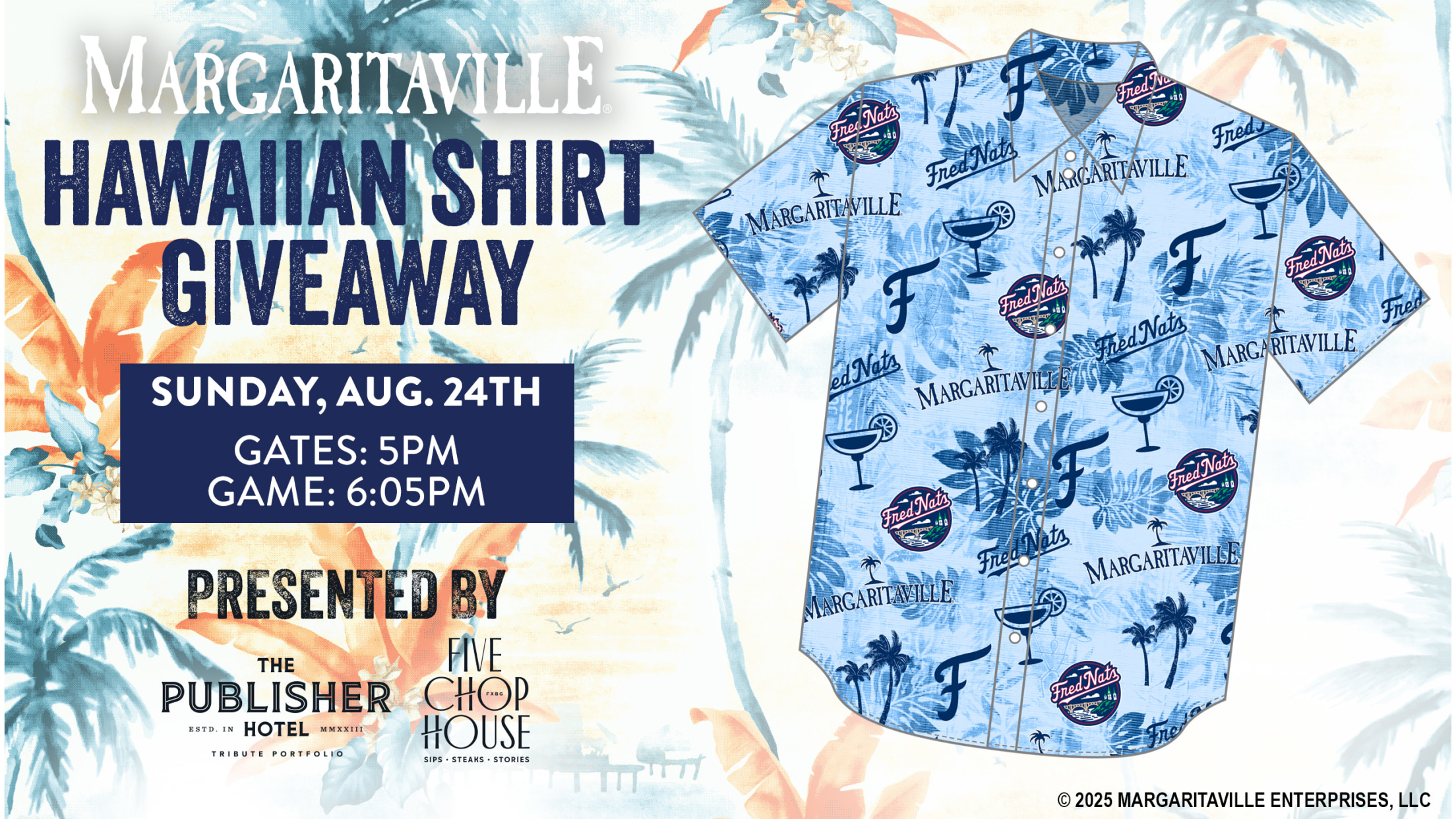 The first 1,000 fans are taking home a Hawaiian shirt, courtesy of The Publisher Hotel and Five Chophouse.