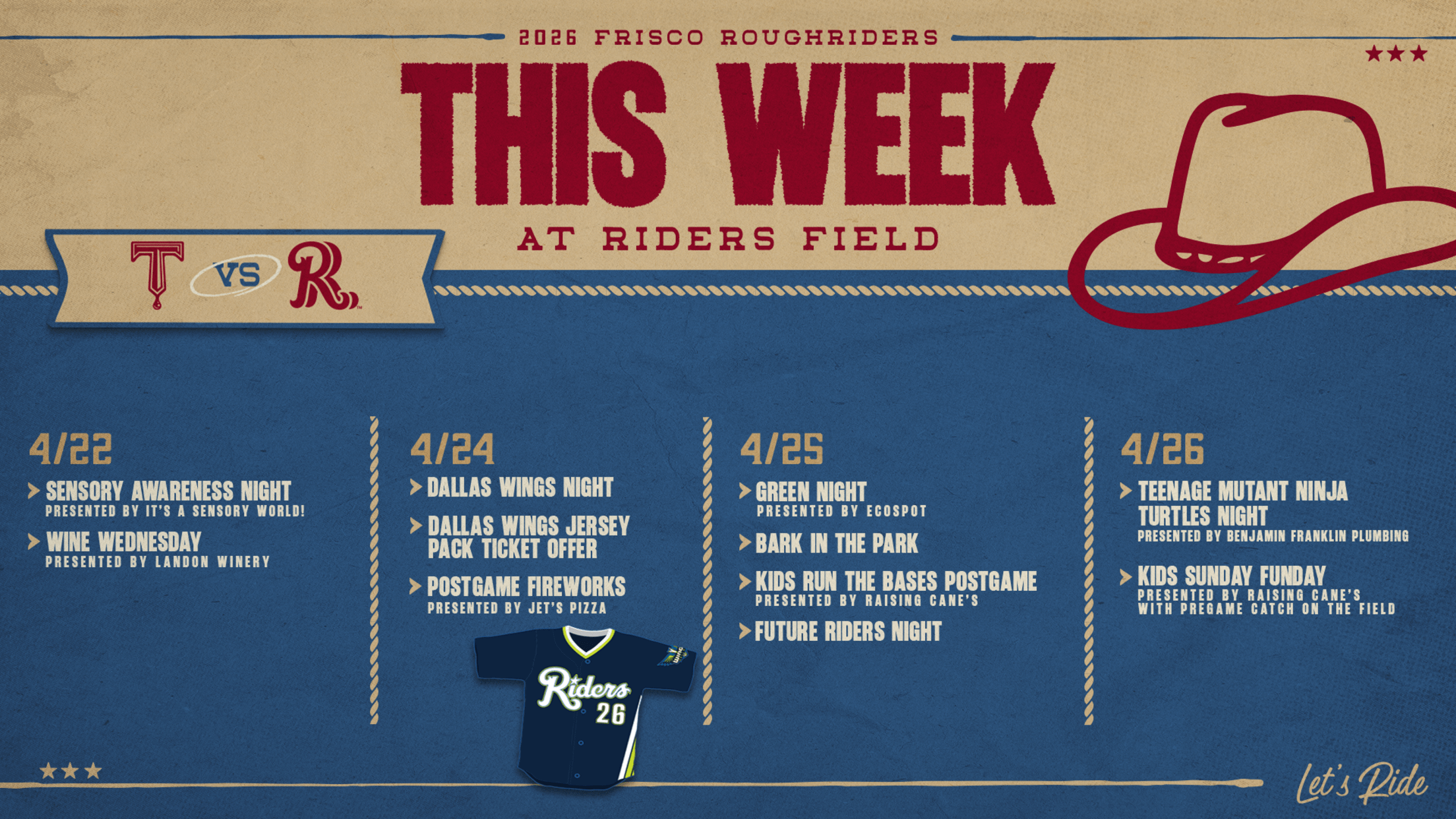 FRISCO, Texas (March 25, 2026) – The Frisco RoughRiders, Double-A affiliate of the Texas Rangers, are excited to unveil new additions to Riders Field and the overall fan experience, helping to propel 2026 to the franchise's best season yet. Buy tickets here. Check out the ticket specials here. Physical Upgrades