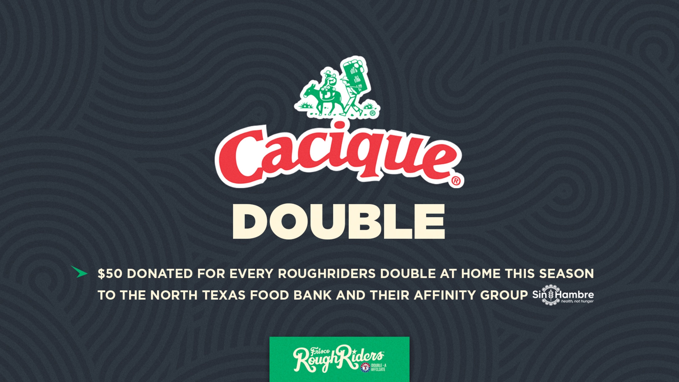 Cacique is excited to partner with the RoughRiders as the proud sponsor of all home doubles hit by the team. Through this collaboration, Cacique, the RoughRiders and the North Texas Food Bank, along with their Affinity Group SinHambre, are joining forces to combat hunger in North Texas. For every home double hit by the RoughRiders, Cacique will donate $50 to support the food bank's mission of ending hunger in the region, which Cacique proudly calls home.