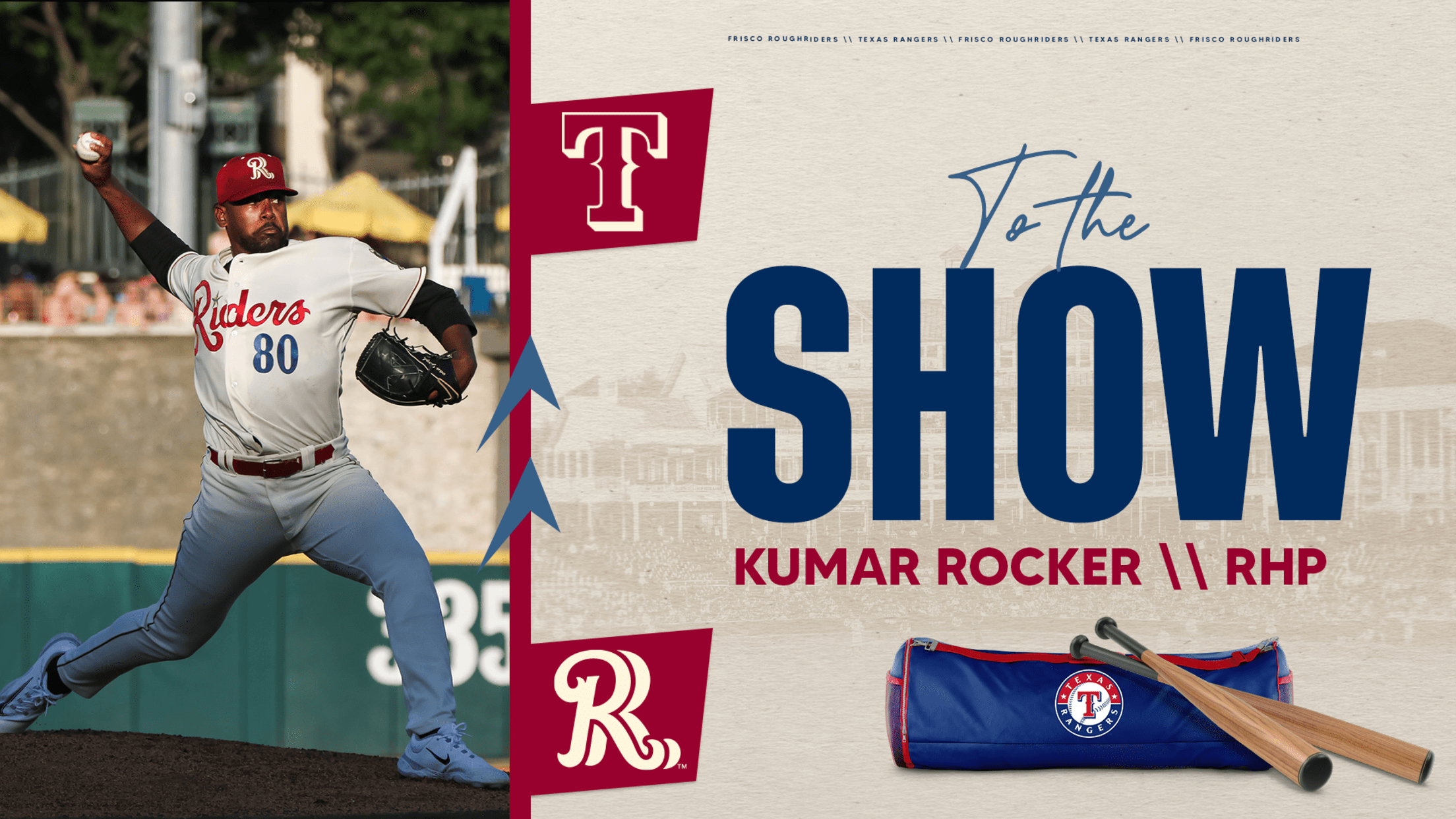 FRISCO, Texas (September 13, 2024) – Former Frisco RoughRiders pitcher Kumar Rocker made his MLB debut with the Texas Rangers on Thursday, September 12th in their game against the Seattle Mariners at T-Mobile Park. The 24-year-old Rocker started the game for the Rangers, surrendering a pair of singles before striking