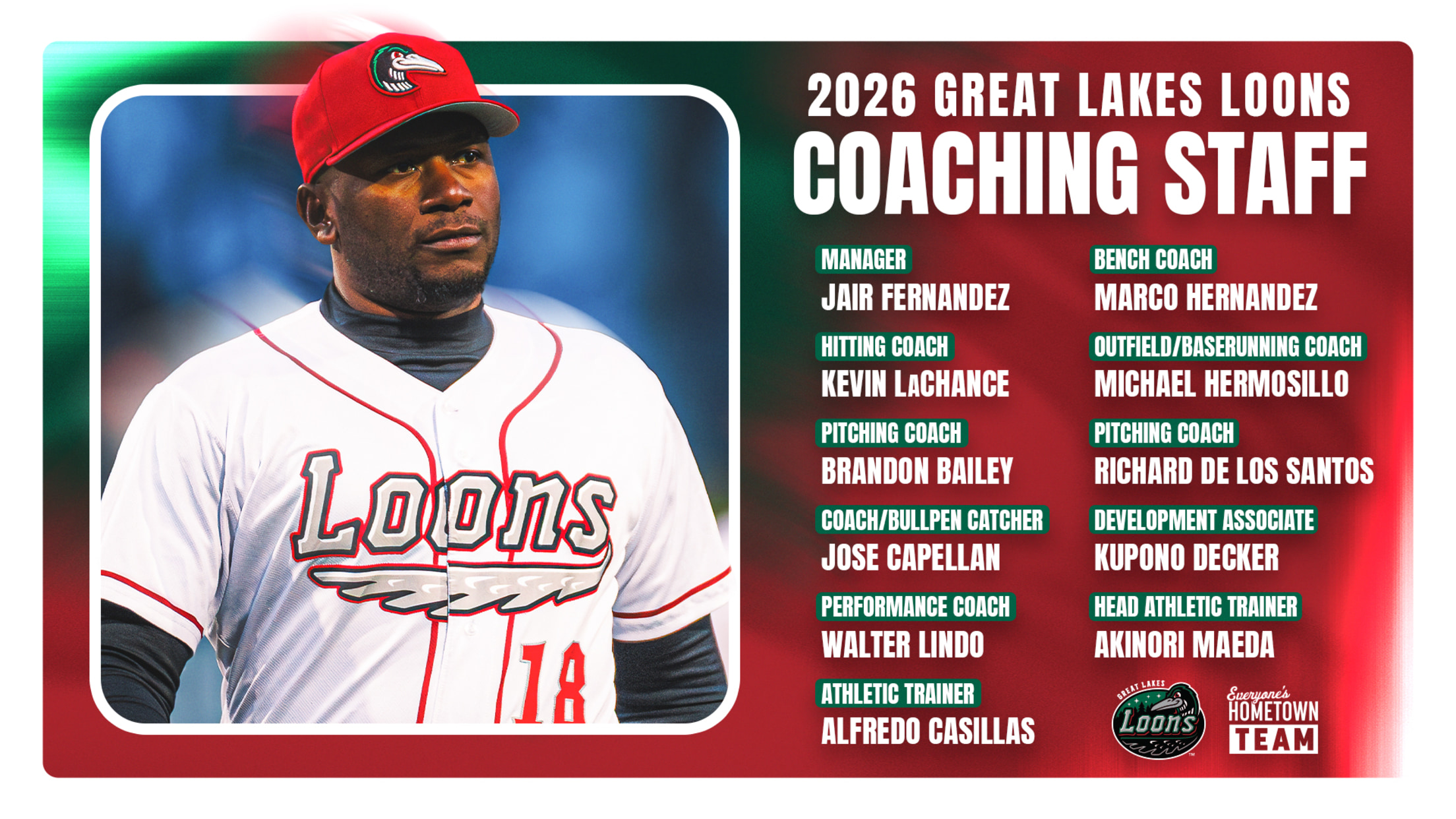 MIDLAND, Mich. – The Great Lakes Loons, in conjunction with the nine-time World Series Champion Los Angeles Dodgers, are excited to announce the team’s 2026 coaching staff.