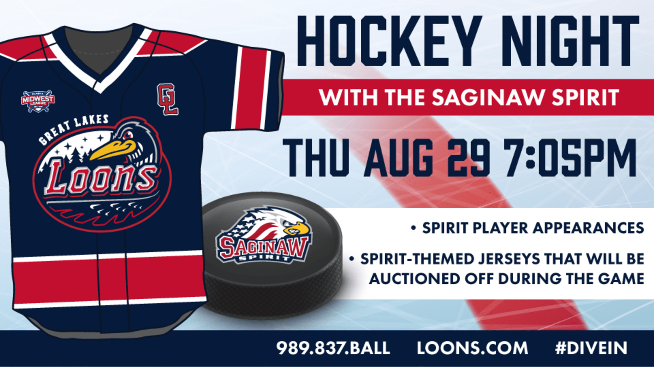 In 2019, the teams will become more closely tied than they ever have before. For the penultimate home game of the regular season on Thursday, August 29, the Loons will host Hockey Night with the Saginaw Spirit.