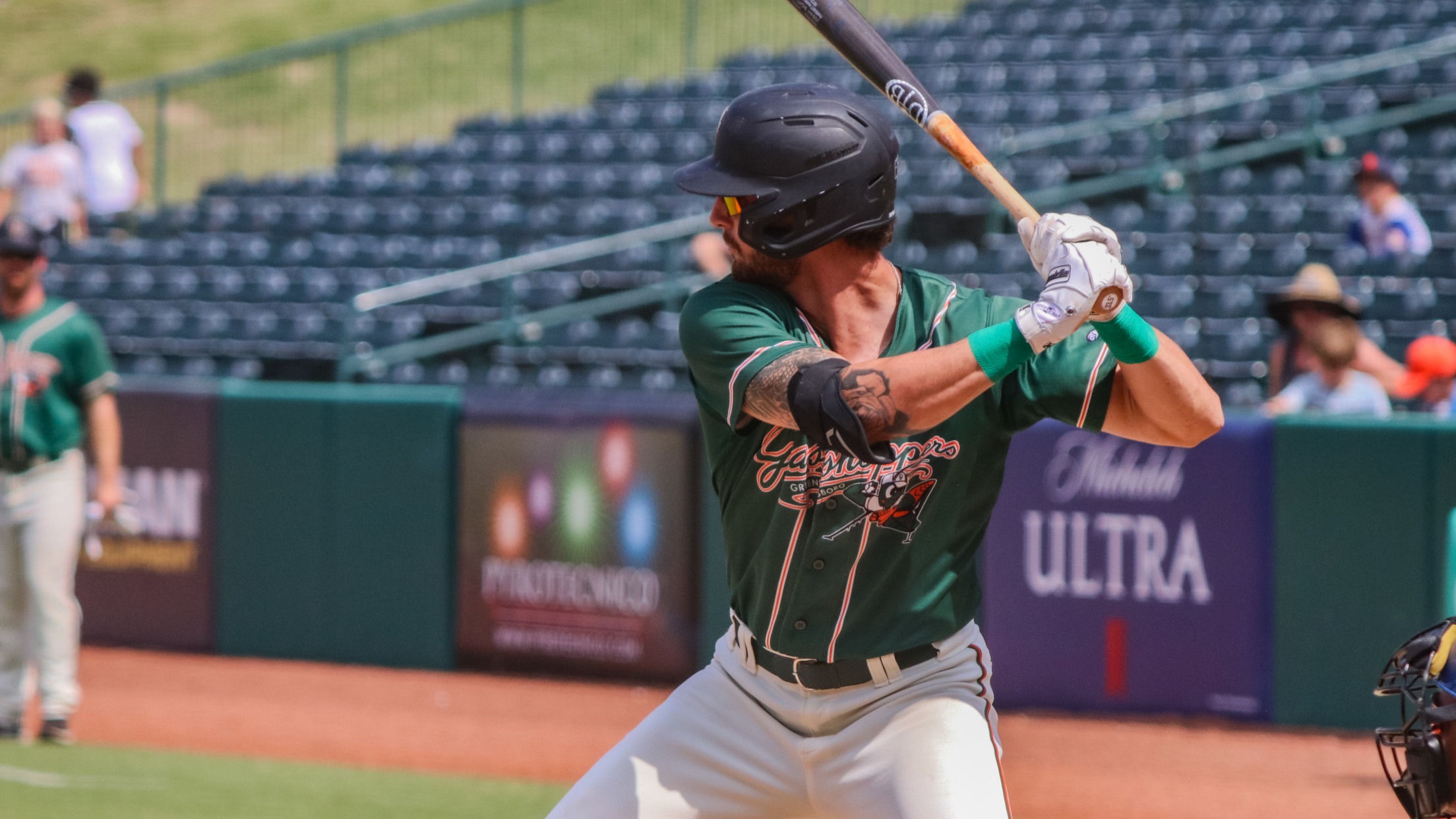 GREENVILLE, SC – The Greensboro Grasshoppers dominated the Greenville Drive 14-4 on Wednesday, August 9. The Grasshoppers improved to 18-19 in the second half of the season while the Drive fell to 18-20. Greensboro outhit Greenville 16-4 while the Drive had one mishap. Leading at the plate for the Grasshoppers