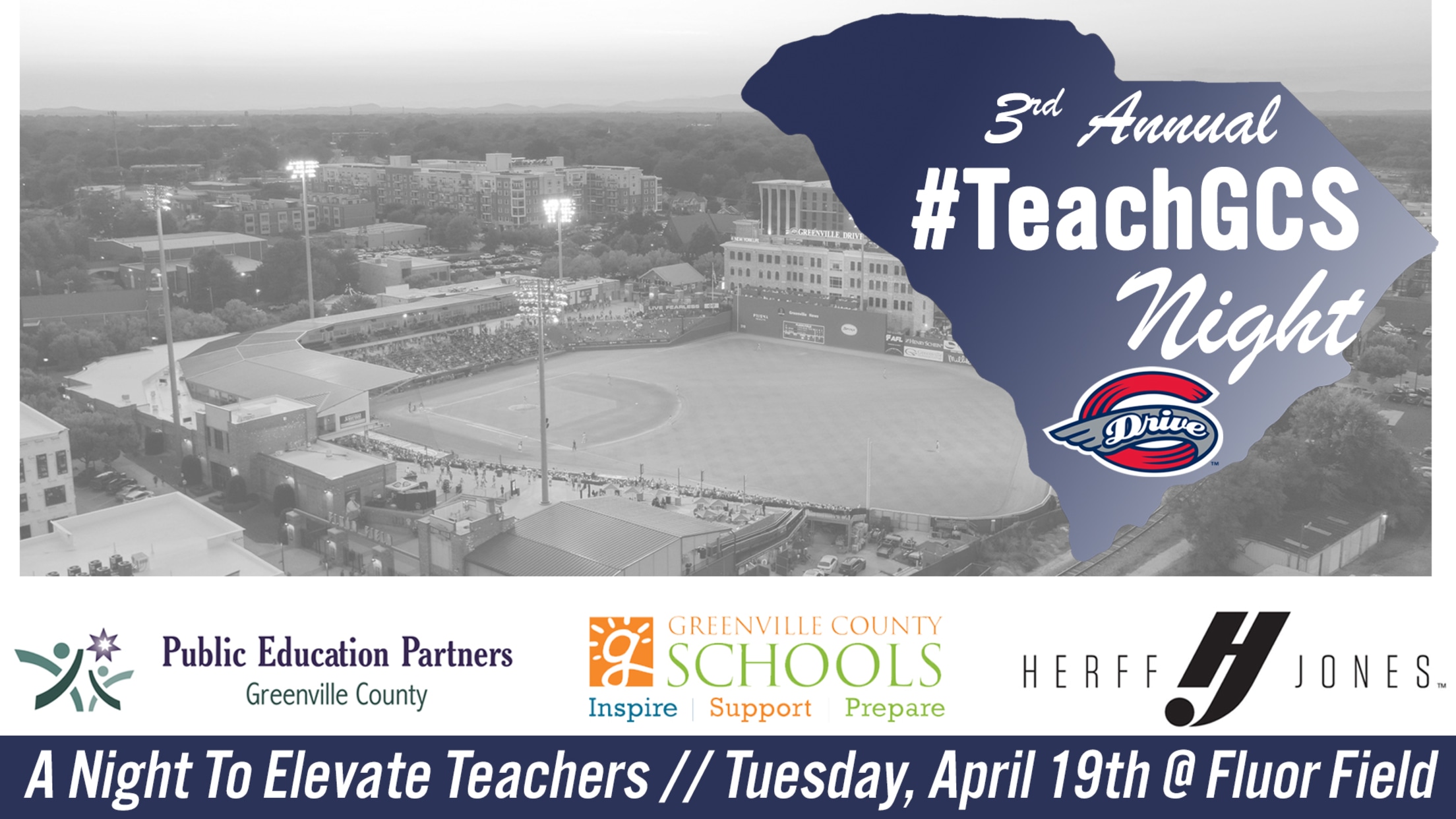 In partnership with Public Education Partners of Greenville County, Greenville Count Schools, and Herff Jones, the Greenville Drive will host their 3rd annual Teach GCS Night at Fluor Field this Tuesday to kick-off the homestand versus the Winston-Salem Dash - affiliate of the Chicago White Sox. A night to elevate