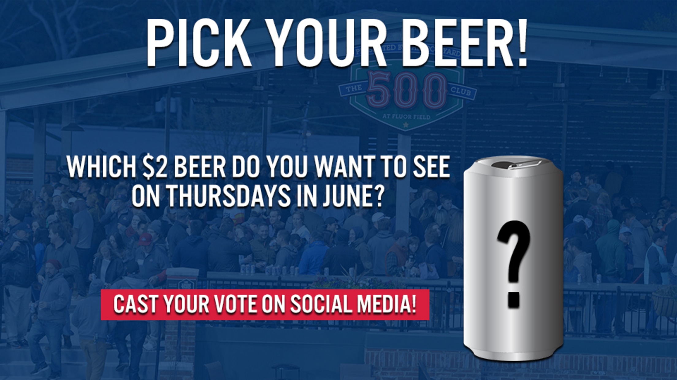 All season long, the Drive will be featuring special $2 beers in the 500 Club for Dollar Drink Night, and we want you to help us decide on social media which beers you'll see!