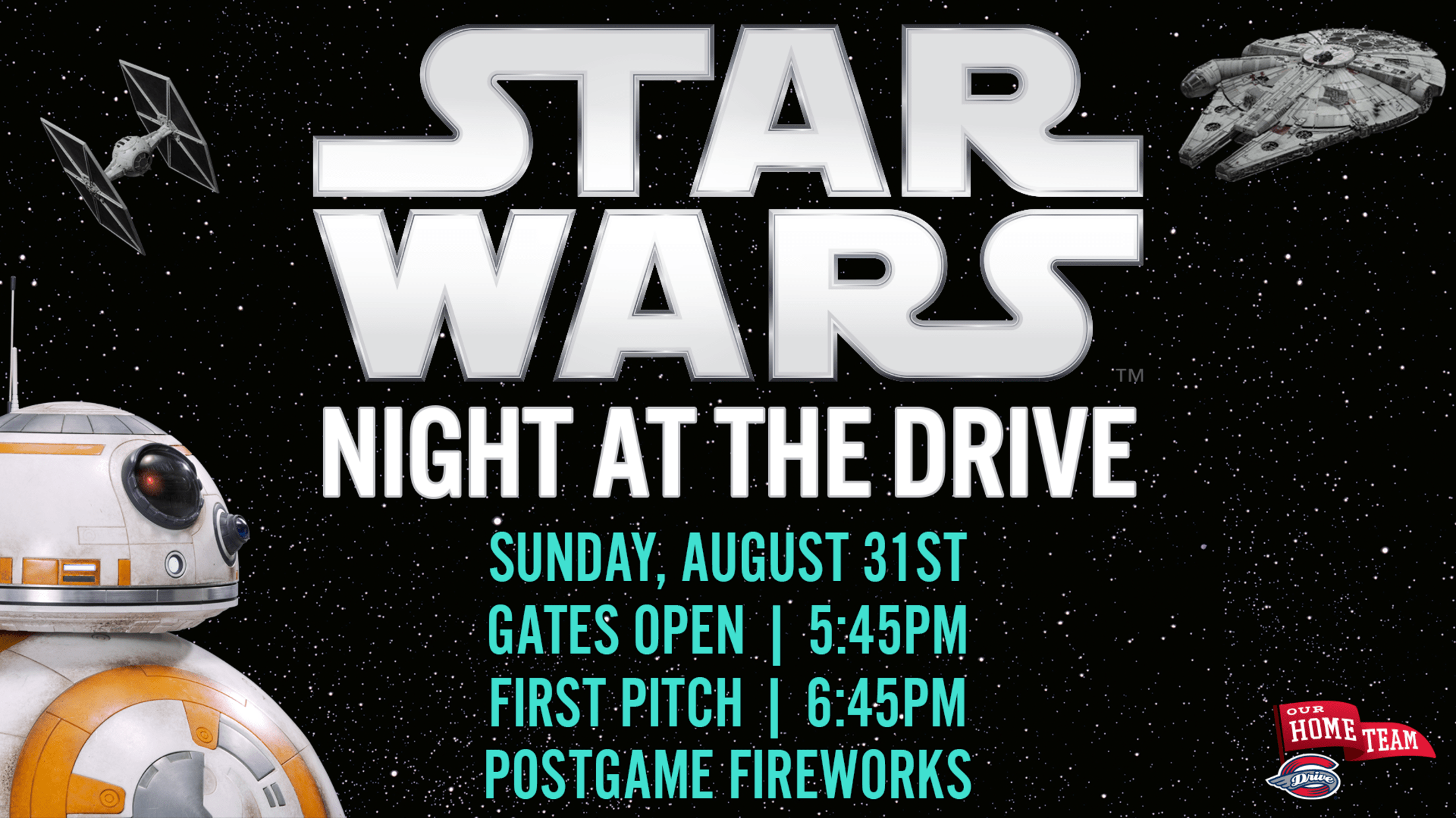 The evening also marks our Star Wars Theme Night, where the Force will be strong throughout the ballpark. The Drive will take the field in special game-worn Star Wars jerseys, which will be auctioned off during the game with proceeds benefiting a local charity.
