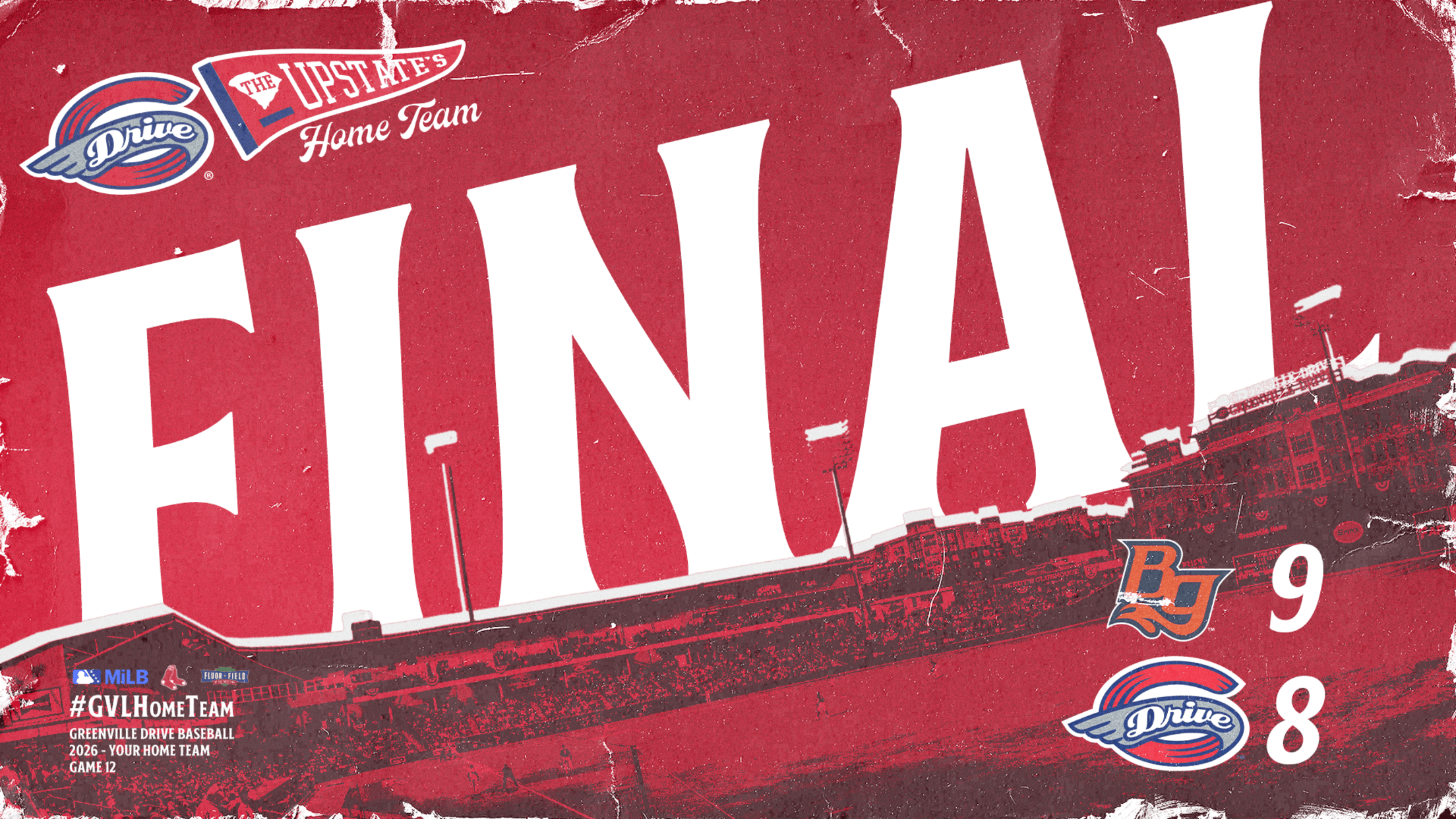 Greenville got one run back in the bottom of the inning when Mason White doubled, moved to third on a wild pitch and scored on Freili Encarnacion’s groundout, but Noah Beal retired the Drive in order in the ninth to secure the save.