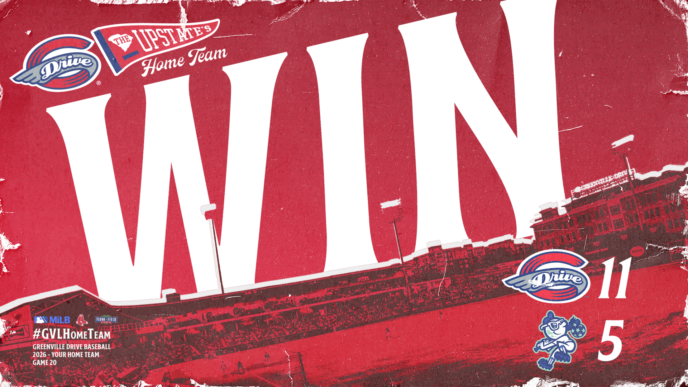 The win moved Greenville back to .500 at 10-10 and gave the Drive their fourth victory in five games against Asheville, which fell to 5-15.