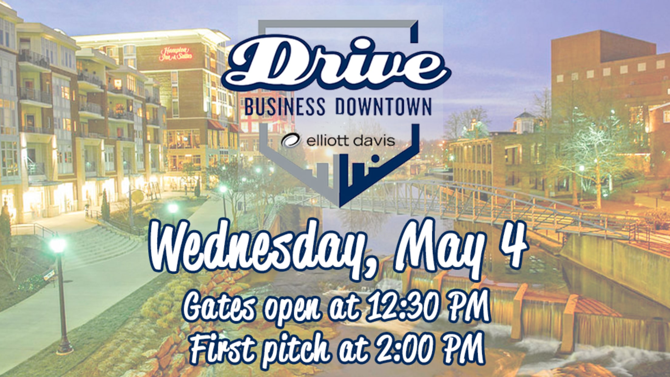 Grab your co-workers, friends and family and join us at Fluor Field for the only weekday afternoon game this season! Our annual Drive Business Downtown game, presented by Elliott Davis, is the perfect excuse to take the afternoon off, get outside, grab a drink and take in the sights of