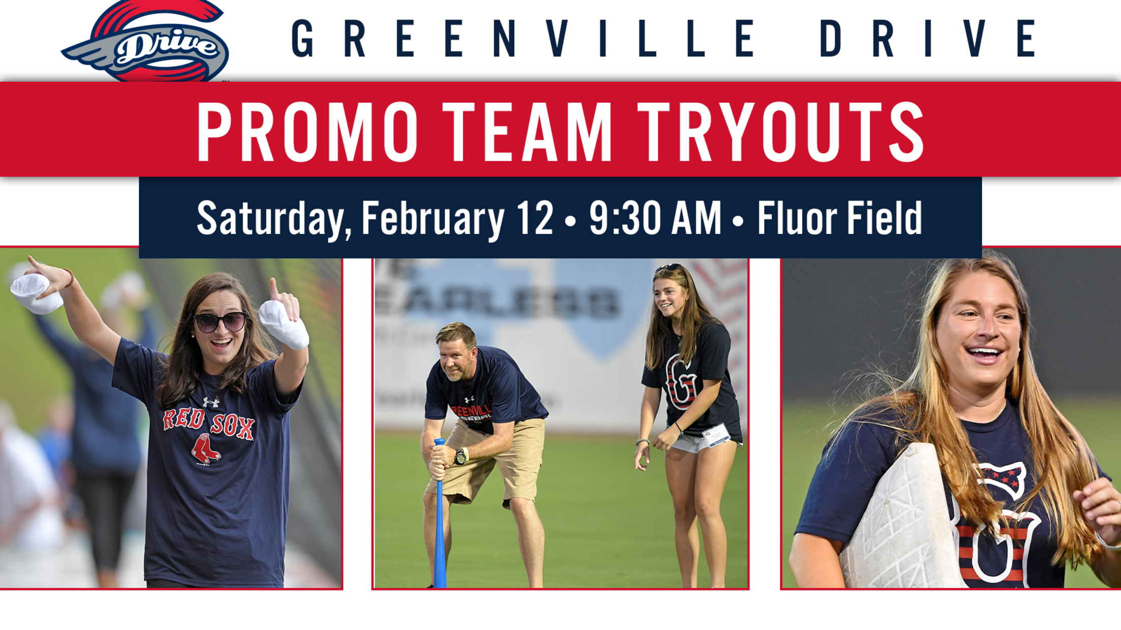 CLICK HERE TO PRE-REGISTER FOR THE TRYOUTS PROMO TEAM The Greenville Drive are looking for fun, enthusiastic candidates who are motivated to represent the organization at home games and in the community. The Promo Team is an integral part of home Drive games and devote their time to energizing the