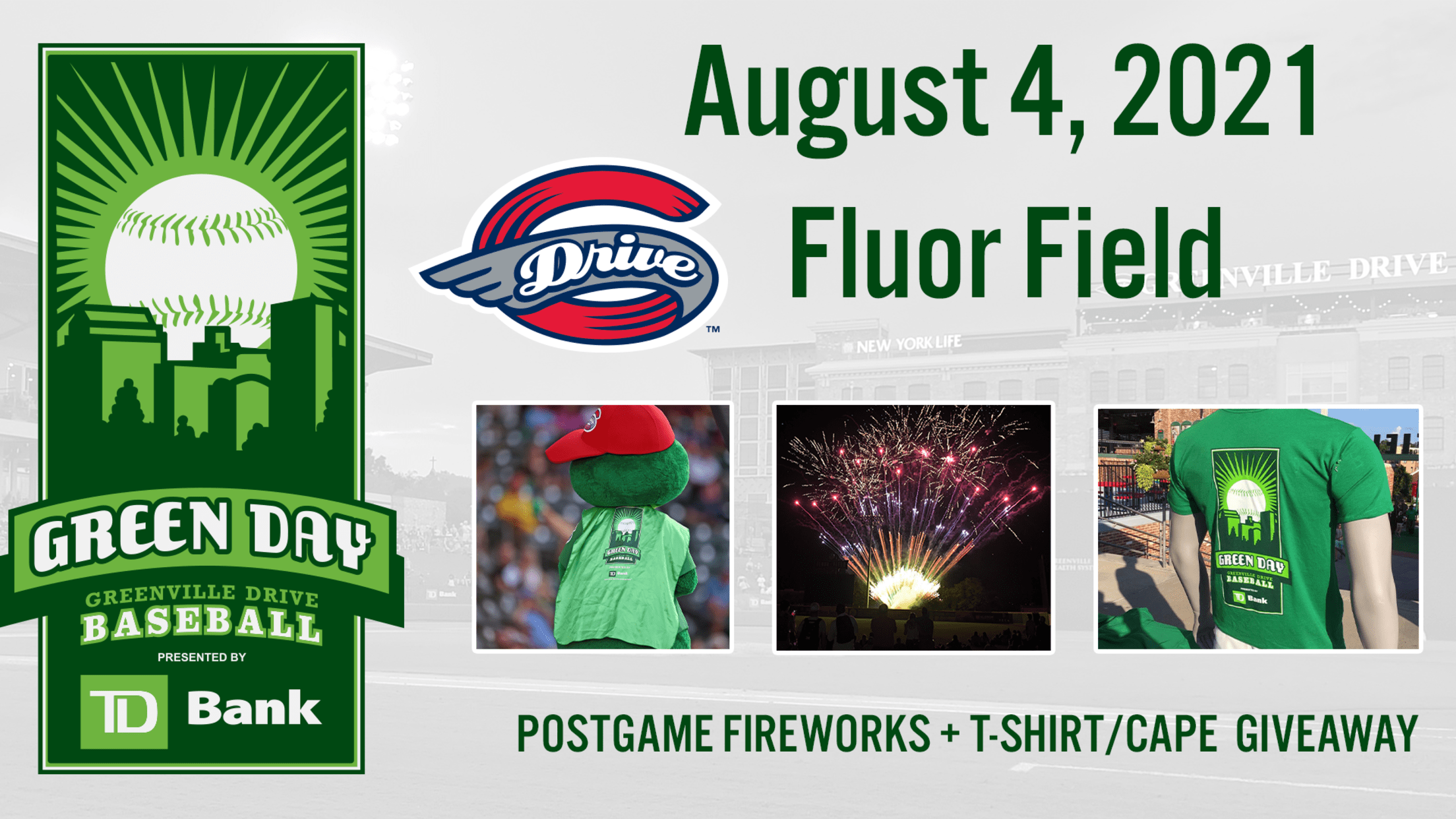 The first 2,000 fans through the gates will receive a commemorative Green Day t-shirt or superhero cape, all courtesy of TD Bank. Throughout the game, we celebrate Greenville with games and trivia. But don't leave after the last out as we will have a big firework show to cap the birthday extravaganza.