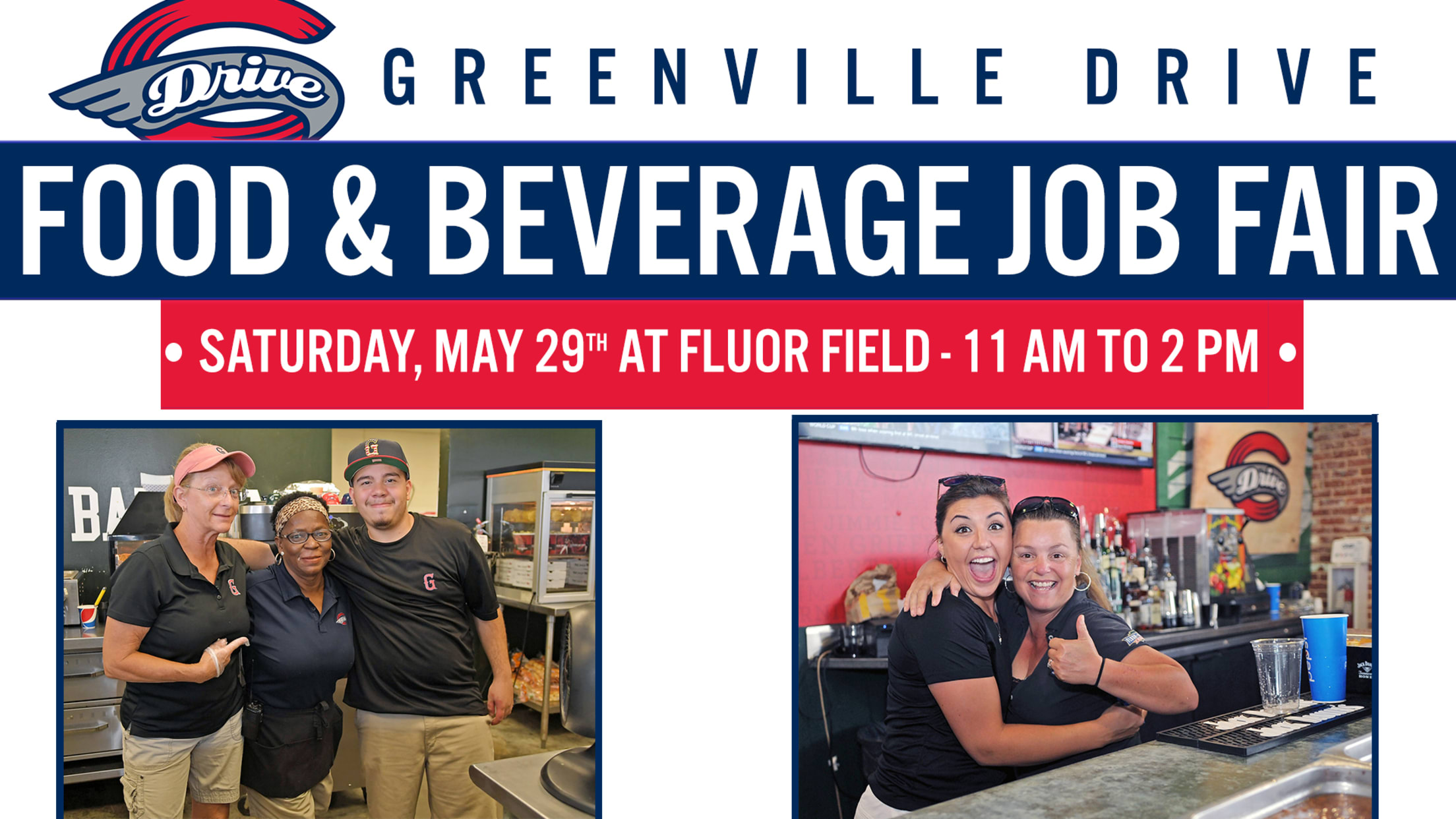 The Drive will host a Food & Beverage Job Fair at Fluor Field this Saturday, May 29th from 11 AM to 2 PM. Those interested in finding out more about these opportunities, and applying, should enter Fluor Field through the Main Street Gate.