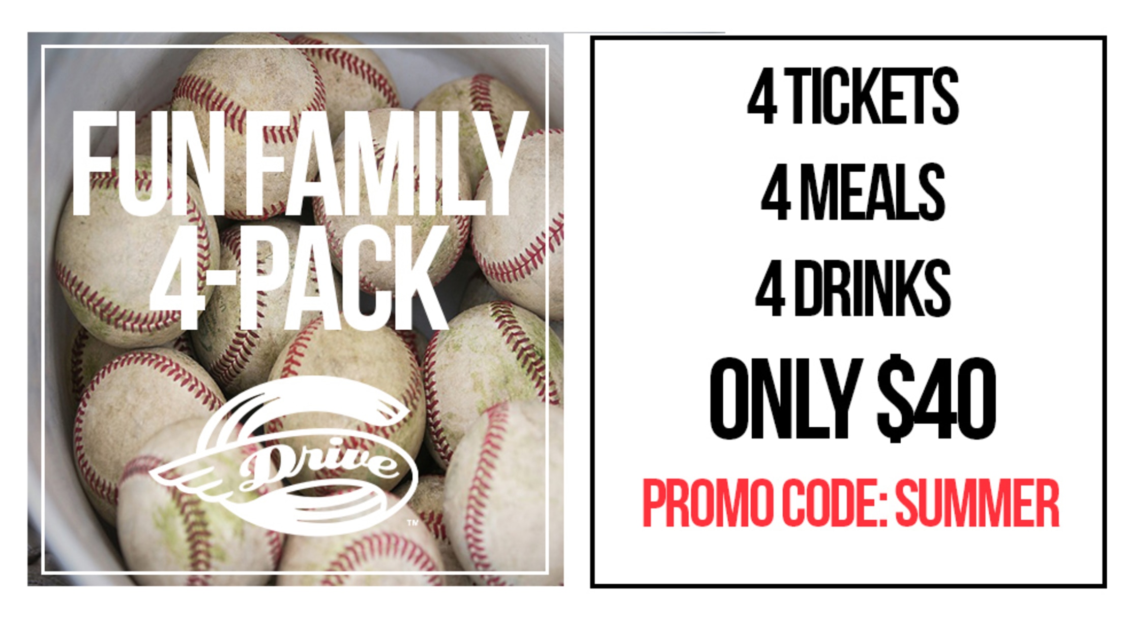 There's no better way to kick off your summer, so purchase your Family 4-Pack today and enjoy a fun evening at Fluor Field with the Drive!