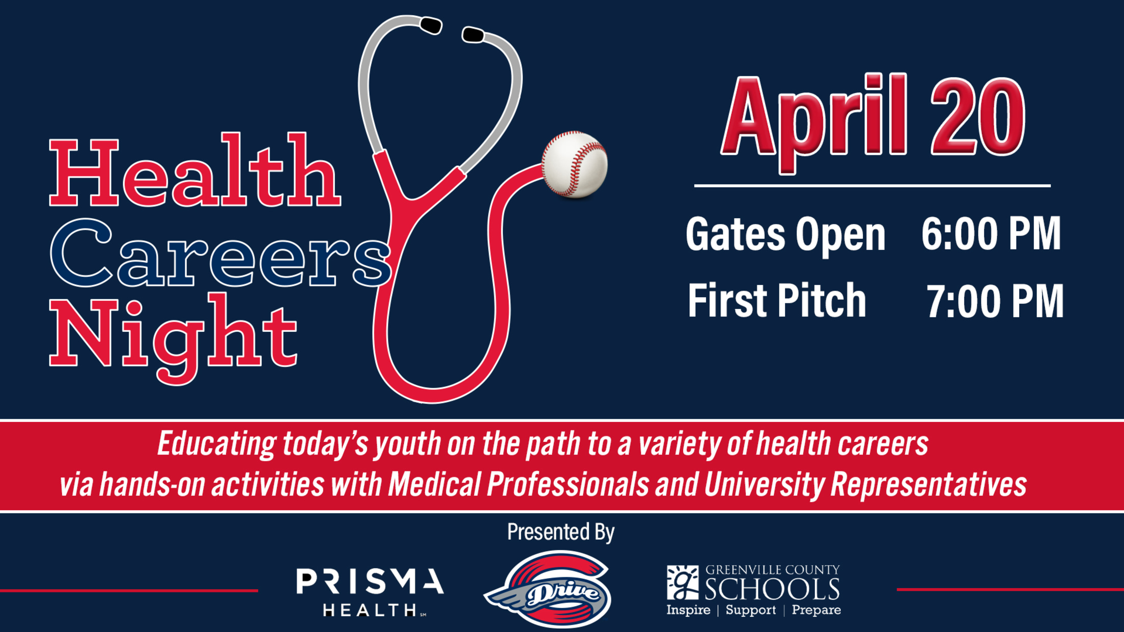 At 5:30 PM, there will be a lively panel discussion in the 500 Club geared towards middle and high school students and their parents. Experts and professionals from Prisma Health and Greenville County Schools will be onsite discussing their own personal pathways to a career in the healthcare industry. Enjoy complimentary ice cream following the discussion!