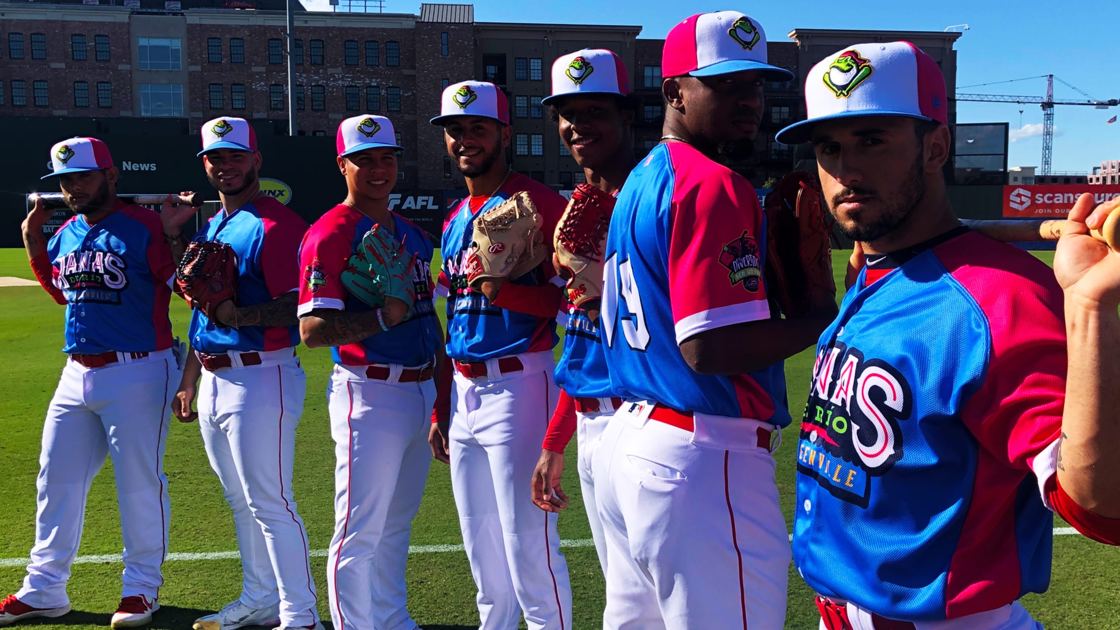 Hats, jerseys, t-shirts and other Ranas de Rio de Greenville merchandise is available at all Drive Team Store locations at Fluor Field.