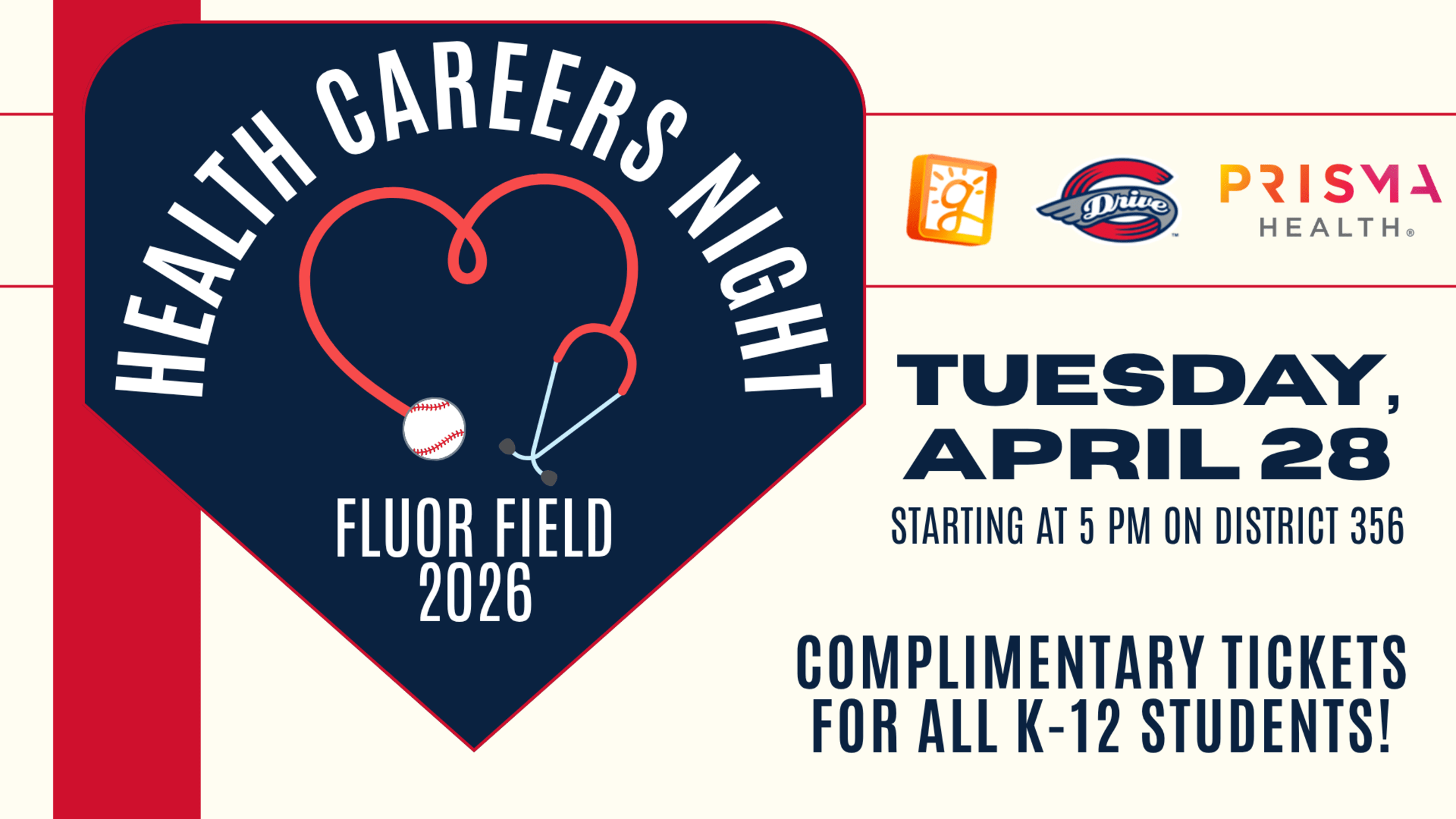 Greenville Drive to Host Health Careers Night at Fluor Field The Greenville Drive’s Health Careers Night at Fluor Field will bring together students, families, educators, and health care professionals for an evening centered on exploration, education, and community engagement. The event will feature a community health fair on District 356,