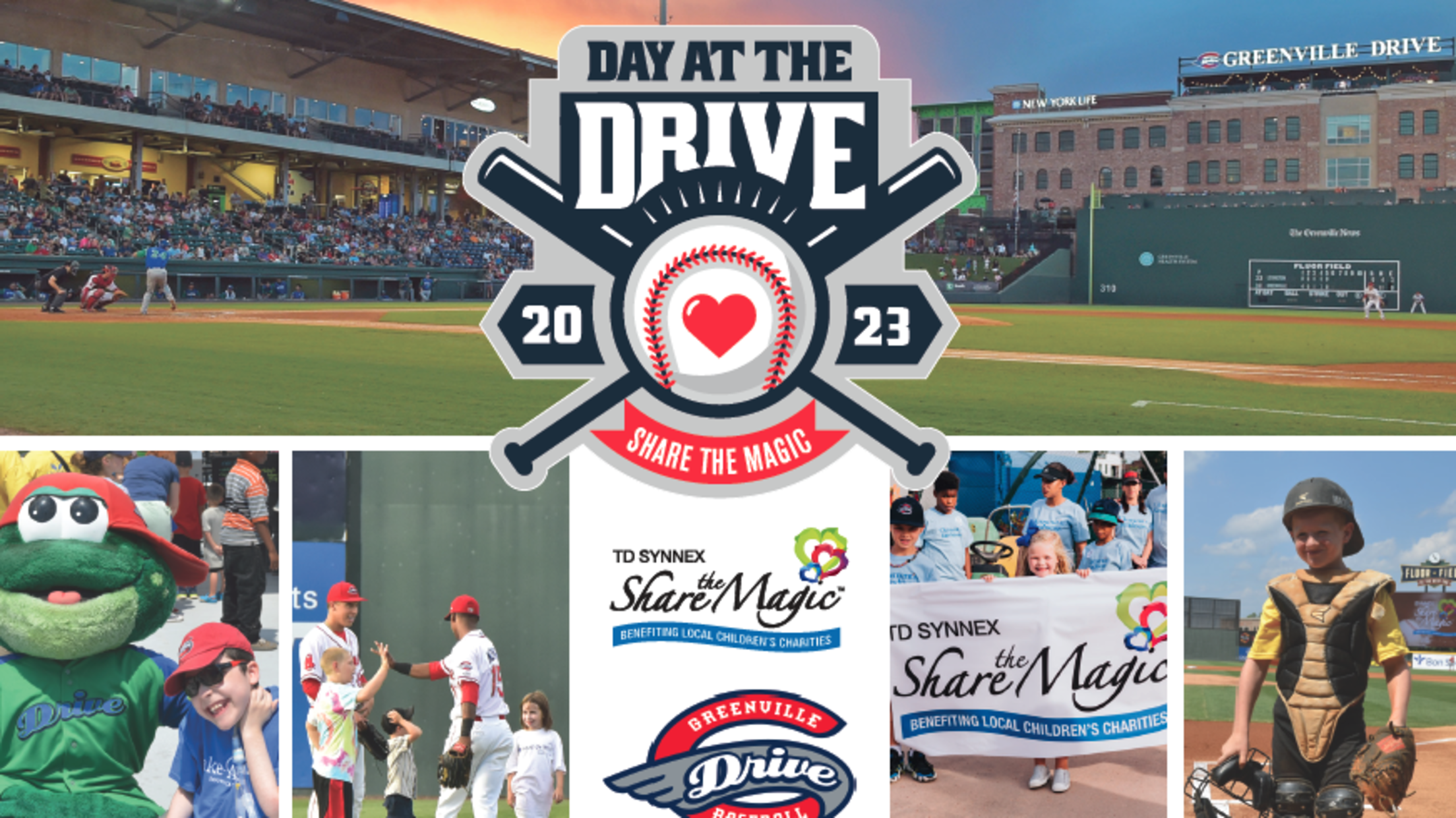 Join forces with the Greenville Drive and TD SYNNEX Share the Magic in supporting children facing adversity. Gather your family and friends for a delightful evening at the ballpark, where you can enjoy the game while making a difference. The gates open at 6:00 PM quickly followed by the Charity Family Parade on the Field at 6:30 PM.