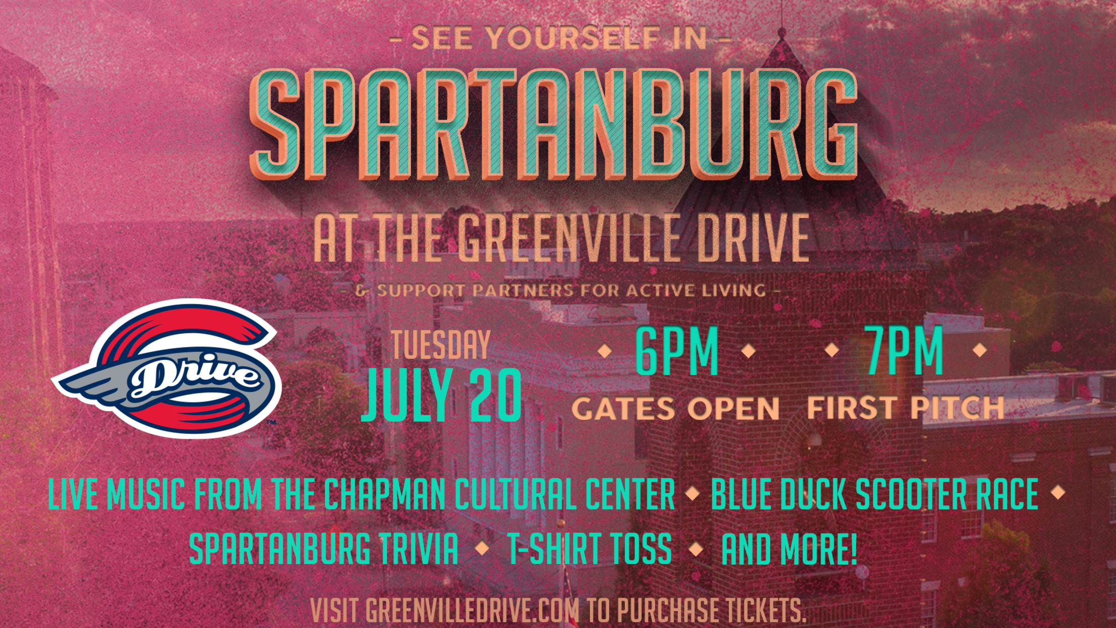 On Tuesday July 20th, the Greenville Drive in collaboration with One Spartanburg, Inc, will host and celebrate its annual Spartanburg Night event at Fluor Field. However, this year is completely different than any before with a focus on Talent and Attraction. We will transform the Drive game into a true celebration of all aspects of the Spartanburg community. For the entire night, we will celebrate the companies, organizations, and leaders that have and continue to contribute to Spartanburg being one of the Upstate’s best places to live, work, and play! Get your tickets here!