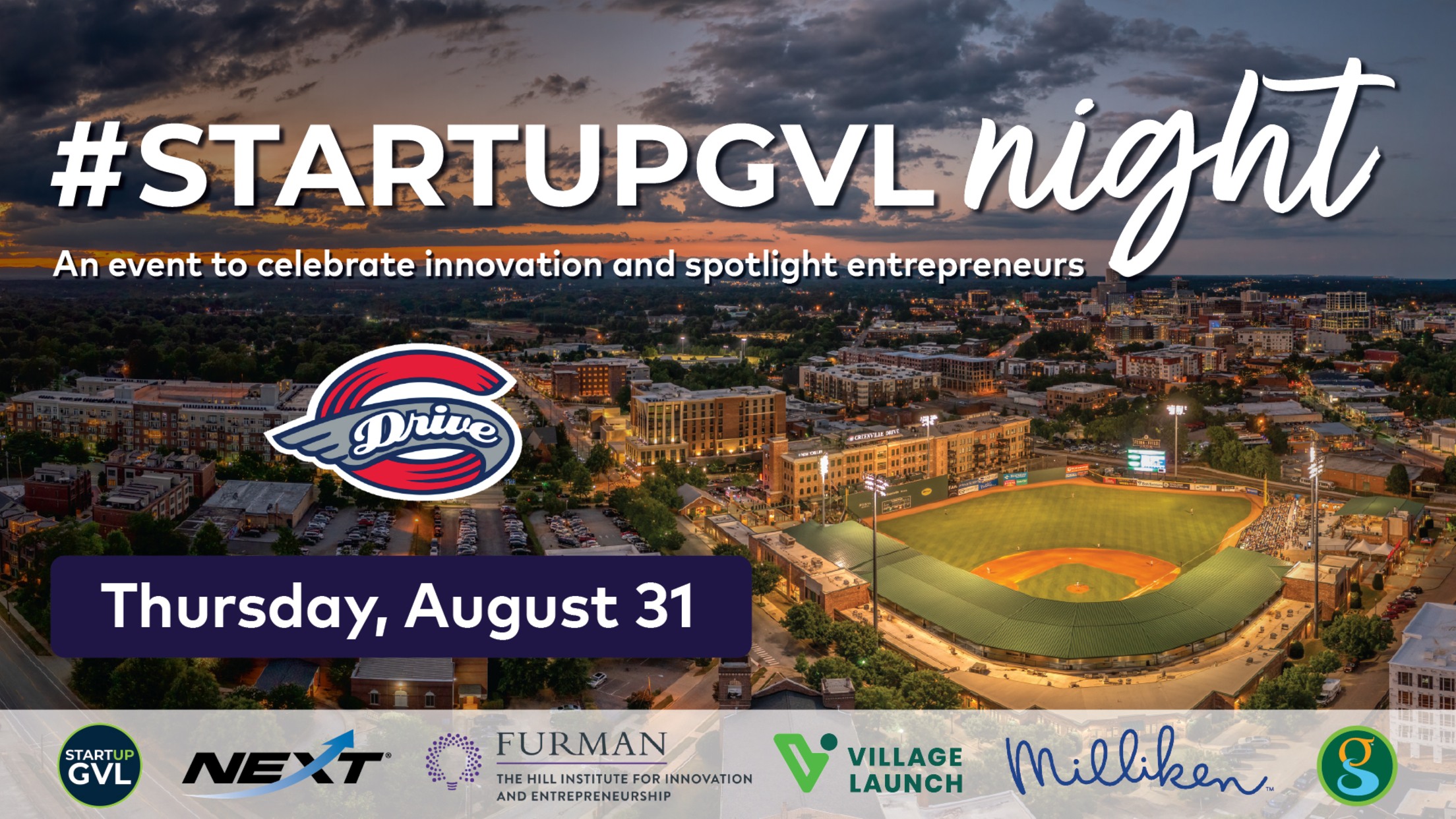 Greenville Drive vs. Brooklyn Cyclones | 7:05 p.m. | Get Tickets Here Join us at Fluor Field on Thursday, August 31st for our third annual #StartupGVL Night at the ballpark – a night to spotlight, celebrate, and showcase the incredible Innovation & Entrepreneurship activity taking place in our community and