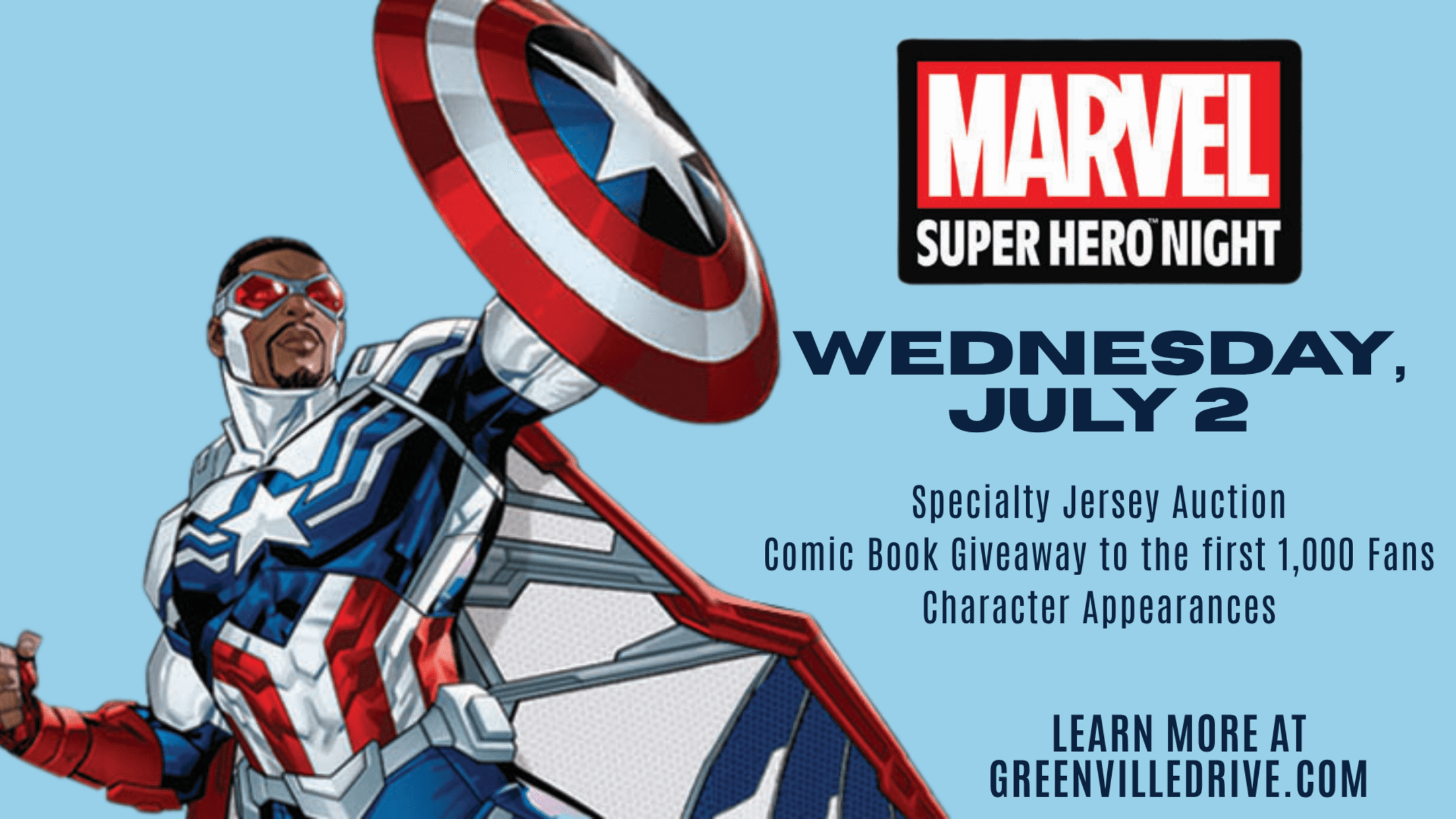 Here's Your Chance To Get A Special Marvel Drive Jersey! It's Marvel Super Hero Night and there is nothing but action-packed excitement in this game! - The first 1,000 fans will receive a Marvel comic book as they enter the gates - Character Appearances throughout the game - The Drive