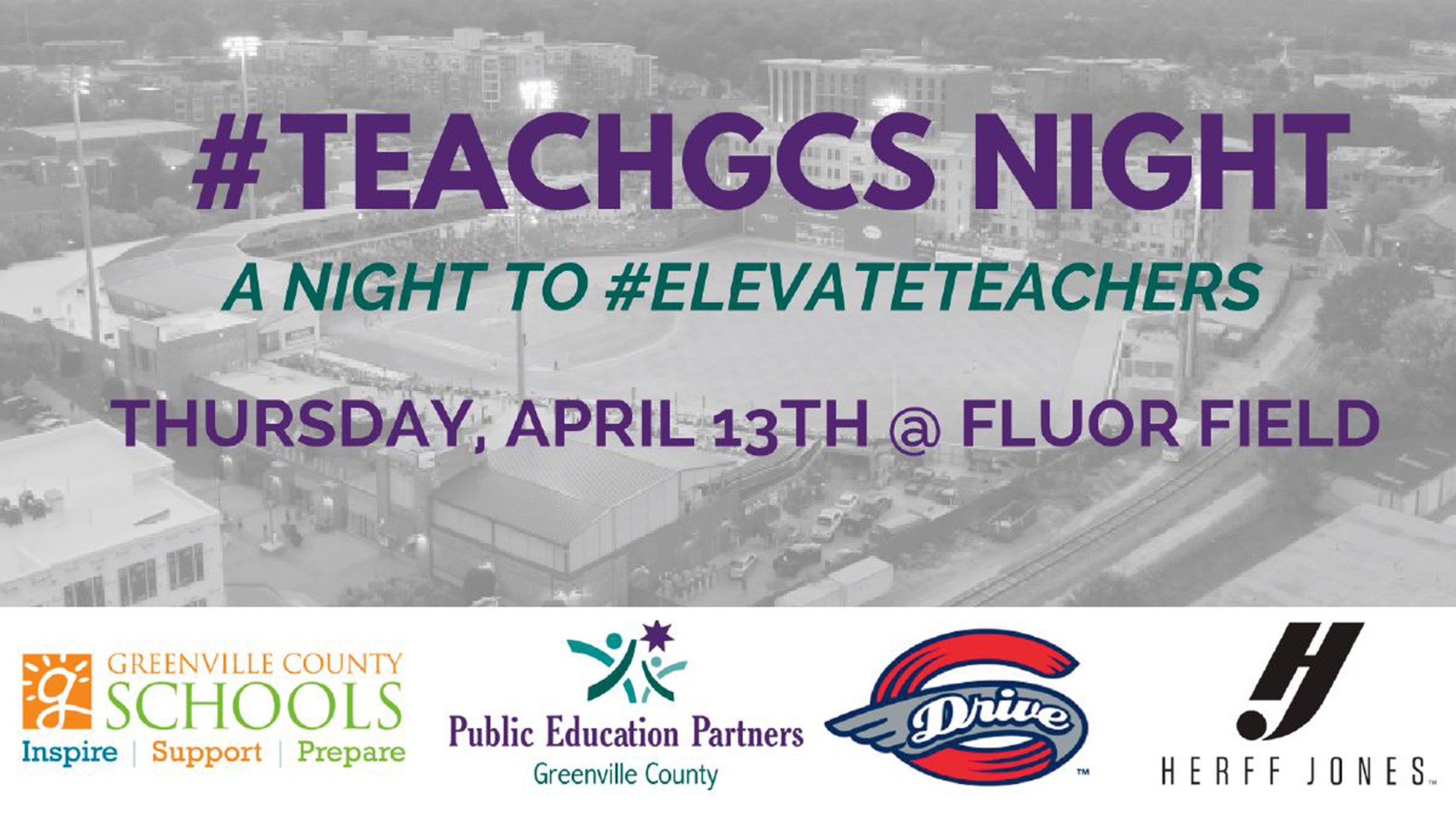The Greenville Drive, Greenville County Schools, Public Education Partners and Herff Jones are excited to announce this year's annual TeachGCS Night at Fluor Field will take place on Thursday, April 13th. The evening is a night to elevate and celebrate teachers from Greenville County Schools.